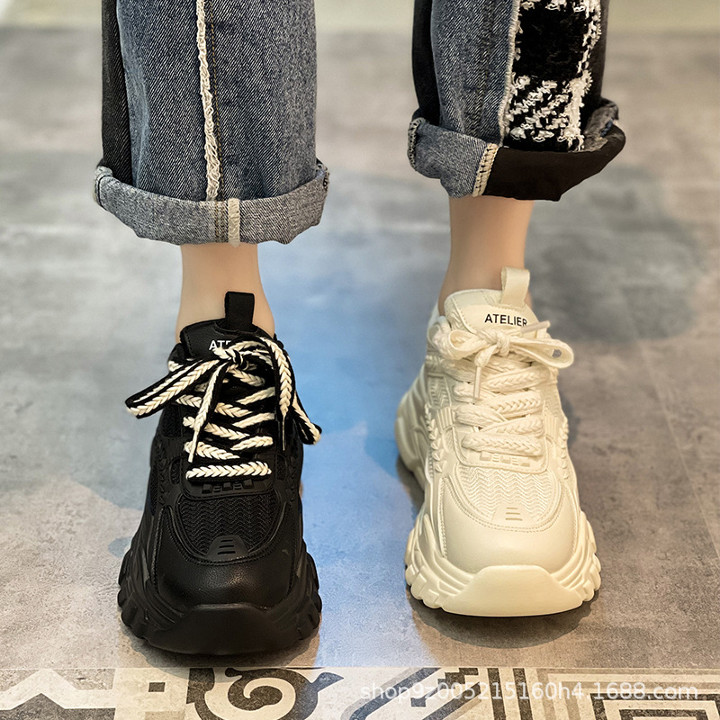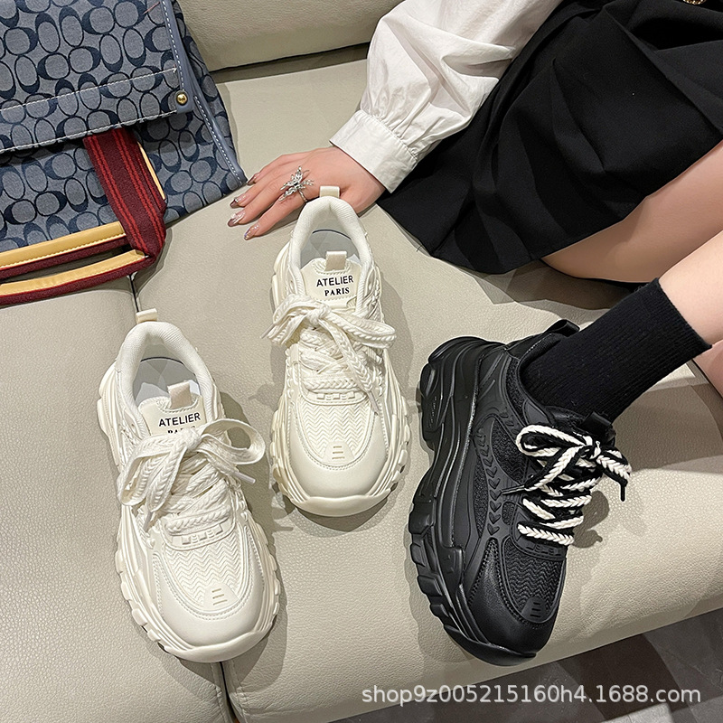 Женские черные кроссовки для внешней торговли, осенние дышащие новые легкие кроссовки для бега на толстой подошве, модные, осень 2023 г.