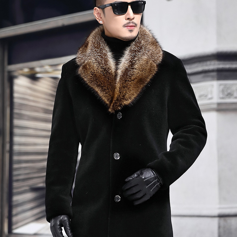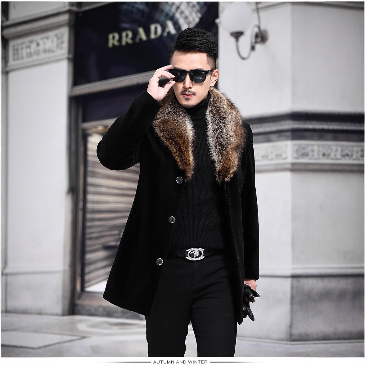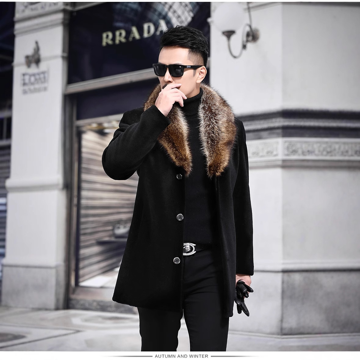 Новое мужское шерстяное пальто для внешней торговли, однобортное, утолщенное, средней длины, шерстяной тренч с меховым воротником на eBay.