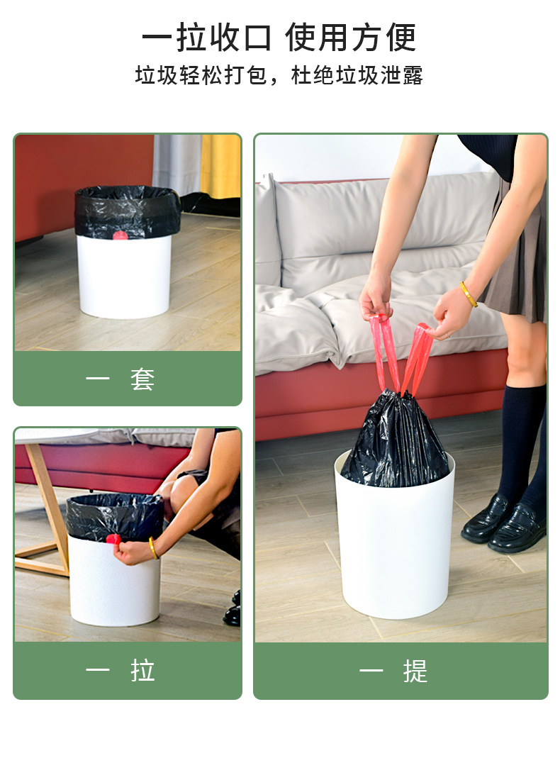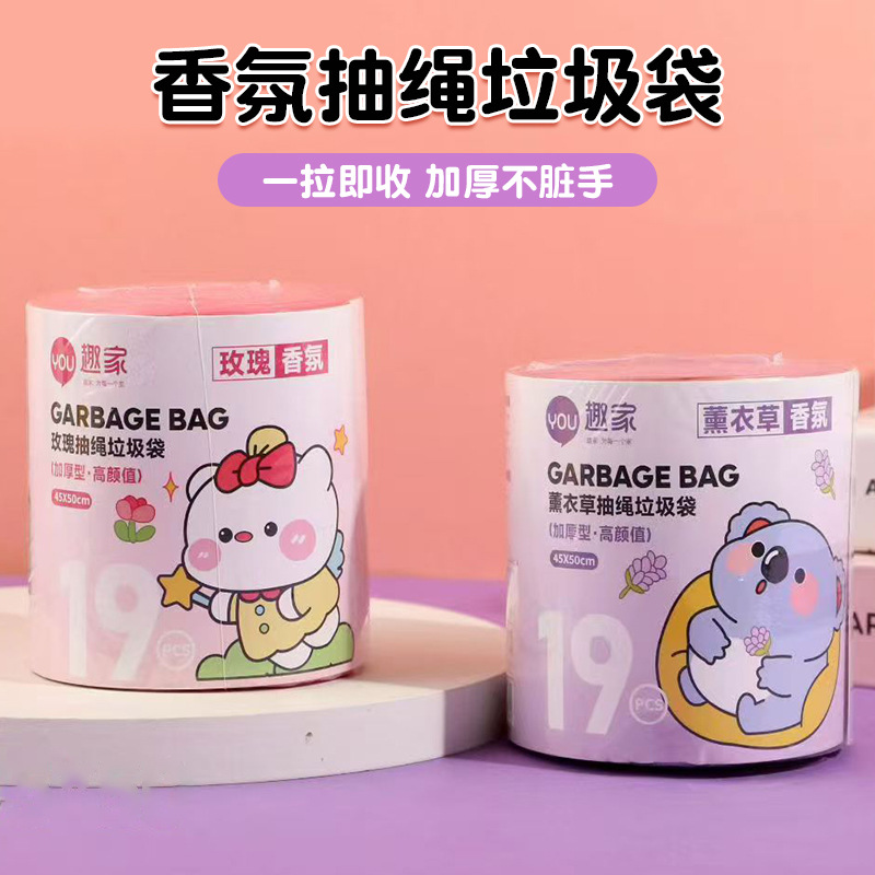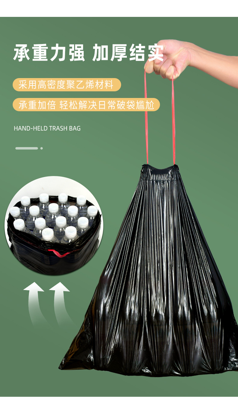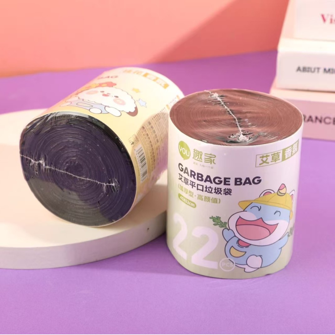 Большие рулонные мешки для мусора на завязках с ароматом, прочные и не рвутся, утолщенные и увеличенные для домашнего использования, черные пластиковые пакеты без разрывов с ароматом полыни.
