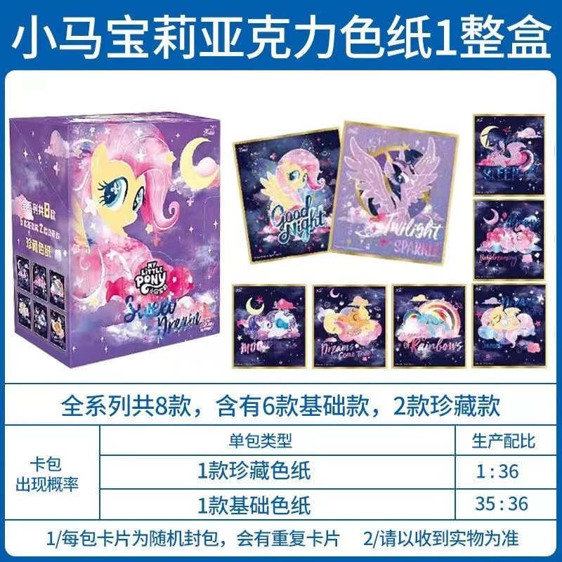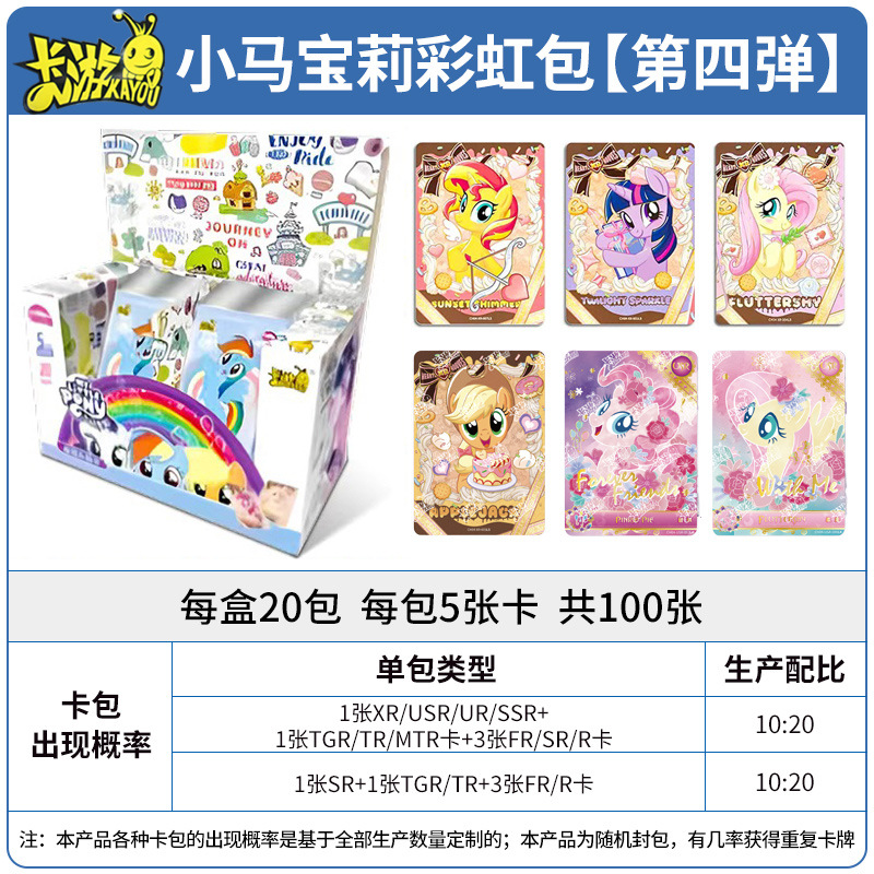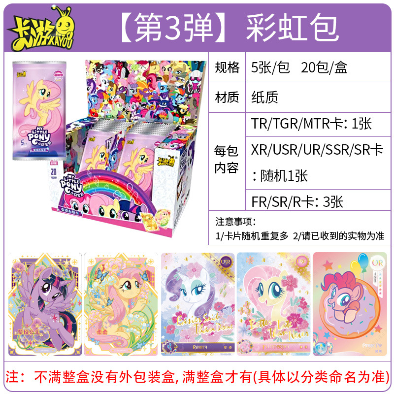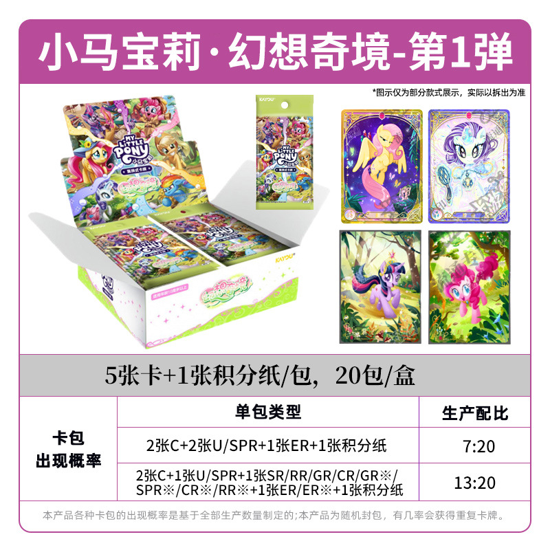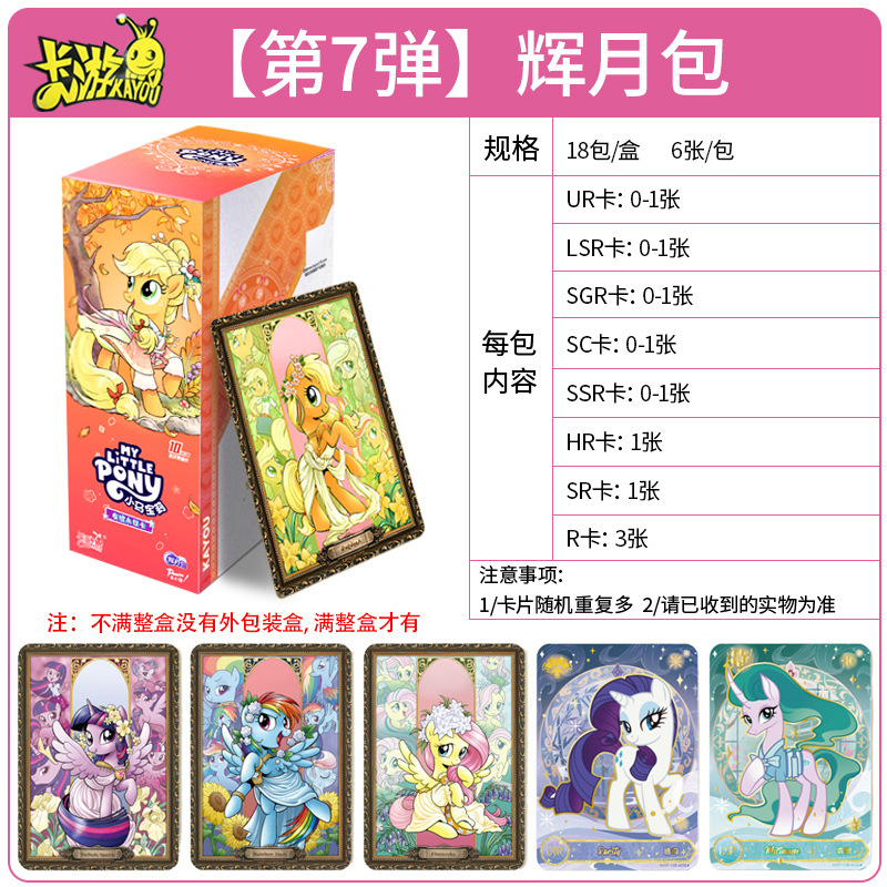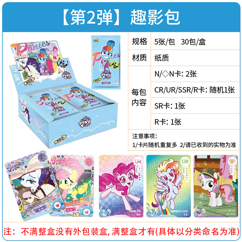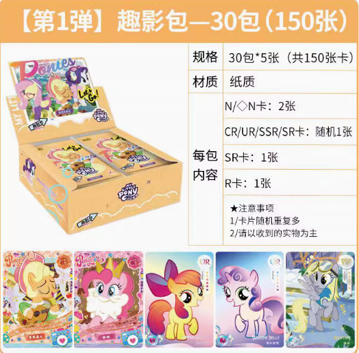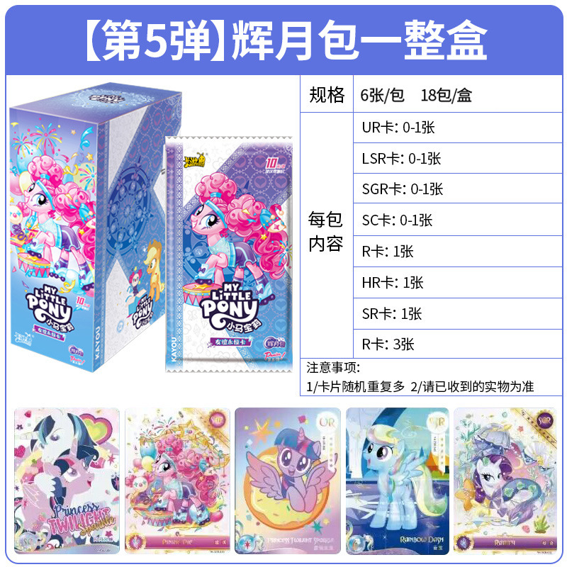 5-й веселый набор теней: 1 коробка из 30 упаковок; My Little Pony Fantasy Wonderland [1 коробка из 20 упаковок]; Коллекционные карточки My Little Pony [Полный набор из 6 коробок]; [Волшебная книга My Little Pony] 1 коробка/4 упаковки + 1 карта SP; 7-й пакет Bright Moon [полная коробка из 18 пакетов]; 6-й пакет Bright Moon [полная коробка из 18 пакетов]; 5-й пакет Bright Moon [полная коробка из 18 пакетов]; Радужный пакет из 4 бомб [полная коробка из 20 пакетов]; Радужный пакет из 3 бомб [полная коробка из 20 упаковок]; Радужный пакет из 2 бомб [полная коробка из 20 пакетов]; 4 забавных тени [полная коробка из 30 упаковок]; 3 забавных тени [полная коробка из 30 упаковок]; 2 забавных тени [полная коробка из 30 упаковок]; 1 забавная тень [полная коробка из 30 упаковок]; My Little Pony Starry Pack [Полная коробка из 16 пачек по 48 карт]; Моему крохе пони придет удача [Вся коробка содержит пакет карт*2, значок*2, стоячую карту*1, красный конверт*6, карту горячего источника*1]; Лазерный билет My Little Pony [полная коробка из 6 упаковок]; Акриловая цветная бумага My Little Pony G4 [полная коробка из 6 упаковок]; Карточная книга «Мой маленький пони»; My Little Pony Rainbow Dream Journey [Полная коробка из 6 упаковок]; Великолепный значок Magic Tail из My Little Pony [полная коробка из 6 упаковок]