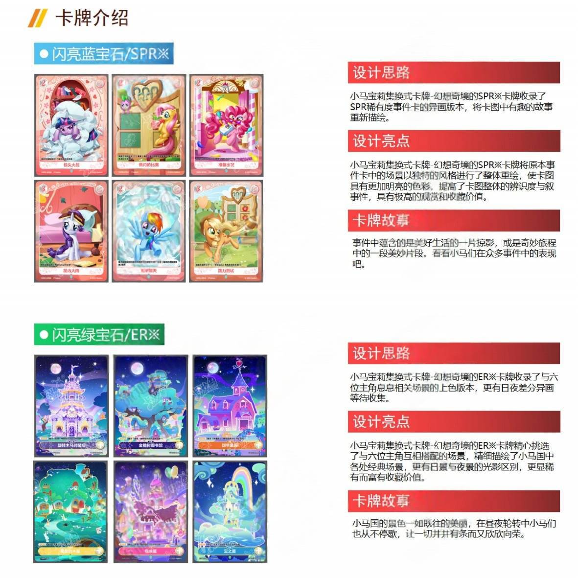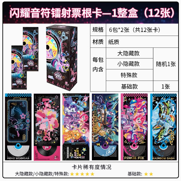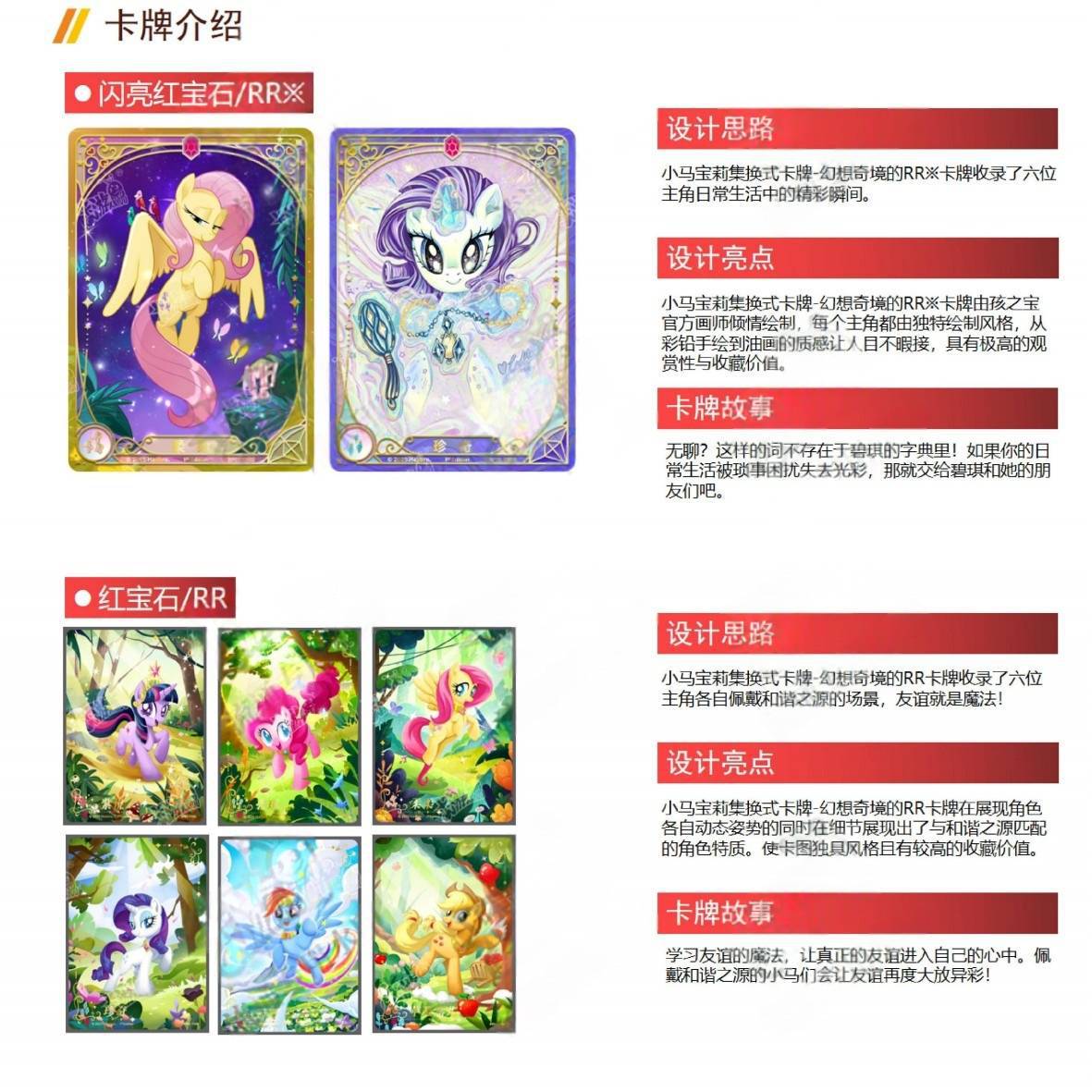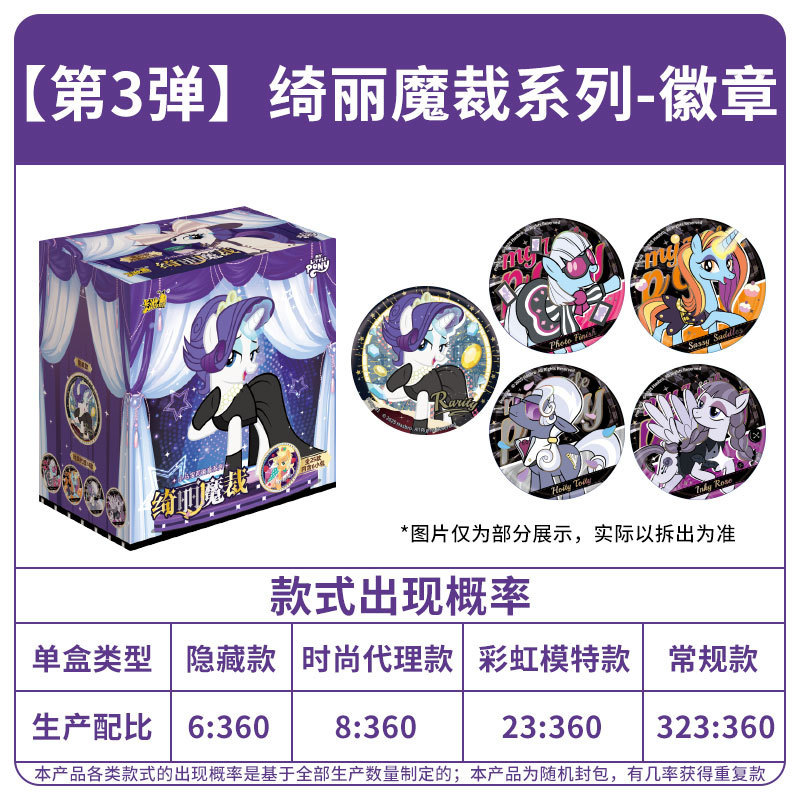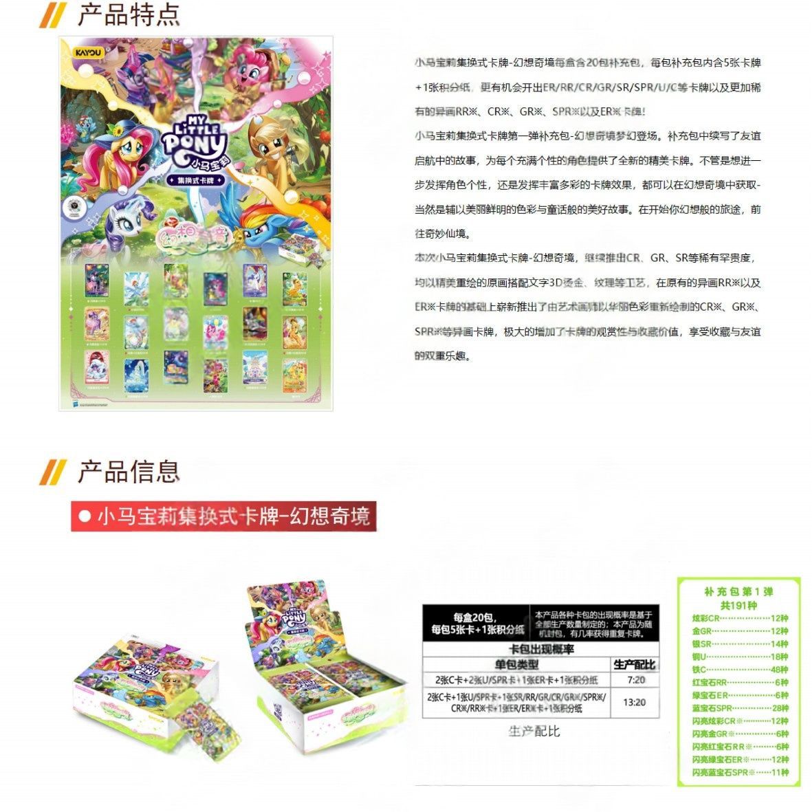 5-й веселый набор теней: 1 коробка из 30 упаковок; My Little Pony Fantasy Wonderland [1 коробка из 20 упаковок]; Коллекционные карточки My Little Pony [Полный набор из 6 коробок]; [Волшебная книга My Little Pony] 1 коробка/4 упаковки + 1 карта SP; 7-й пакет Bright Moon [полная коробка из 18 пакетов]; 6-й пакет Bright Moon [полная коробка из 18 пакетов]; 5-й пакет Bright Moon [полная коробка из 18 пакетов]; Радужный пакет из 4 бомб [полная коробка из 20 пакетов]; Радужный пакет из 3 бомб [полная коробка из 20 упаковок]; Радужный пакет из 2 бомб [полная коробка из 20 пакетов]; 4 забавных тени [полная коробка из 30 упаковок]; 3 забавных тени [полная коробка из 30 упаковок]; 2 забавных тени [полная коробка из 30 упаковок]; 1 забавная тень [полная коробка из 30 упаковок]; My Little Pony Starry Pack [Полная коробка из 16 пачек по 48 карт]; Моему крохе пони придет удача [Вся коробка содержит пакет карт*2, значок*2, стоячую карту*1, красный конверт*6, карту горячего источника*1]; Лазерный билет My Little Pony [полная коробка из 6 упаковок]; Акриловая цветная бумага My Little Pony G4 [полная коробка из 6 упаковок]; Карточная книга «Мой маленький пони»; My Little Pony Rainbow Dream Journey [Полная коробка из 6 упаковок]; Великолепный значок Magic Tail из My Little Pony [полная коробка из 6 упаковок]