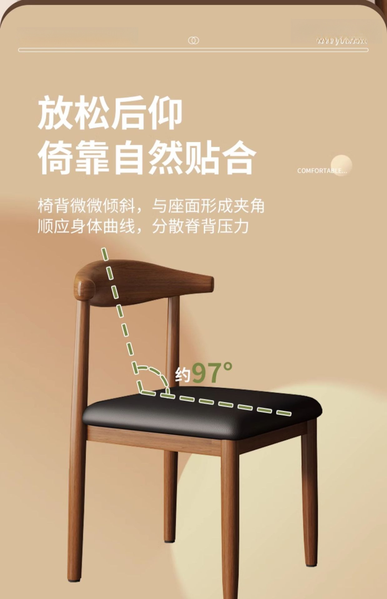 Стул с рогом, стул со спинкой для ресторана, стул для обеденного стола из искусственного дерева, мягкий упаковочный утолщенный бытовой современный простой стул для отдыха