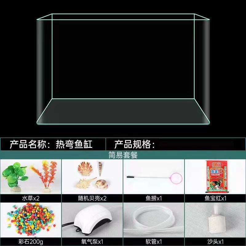 Горячий изогнутый стеклянный аквариум для гостиной Небольшой аквариумный рабочий стол дома Золотая рыбка воды ландшафтная прямоугольная экологическая голая аквариум