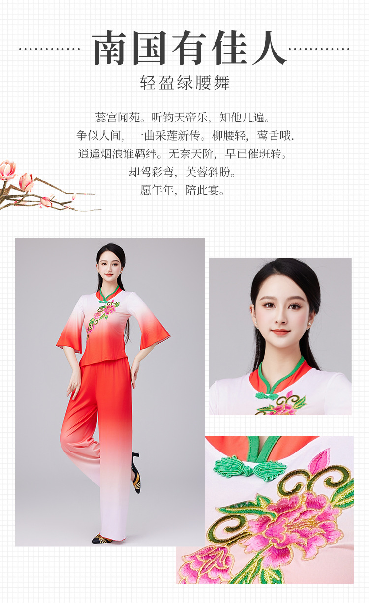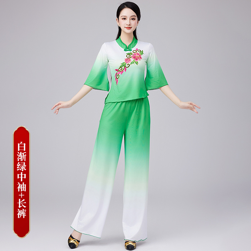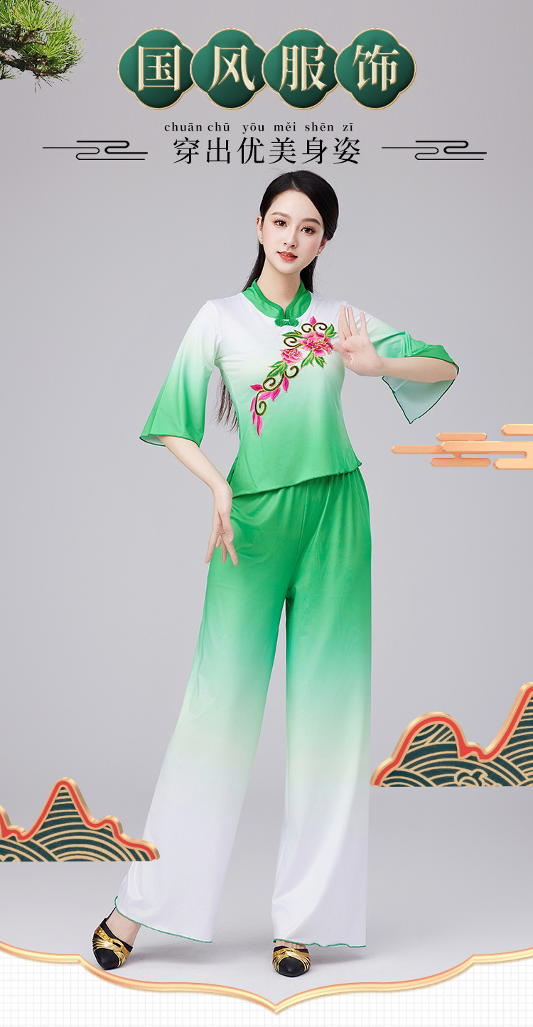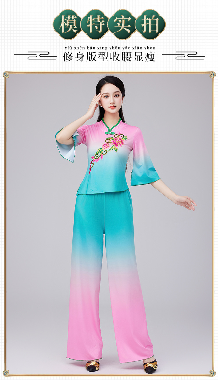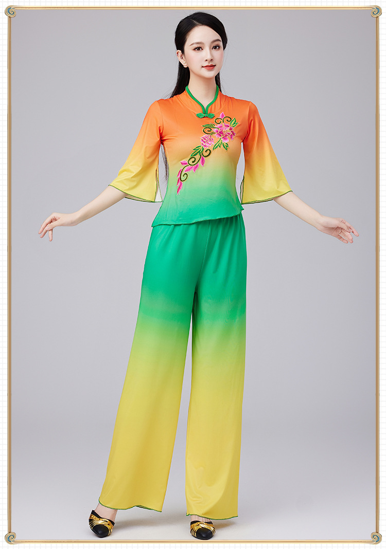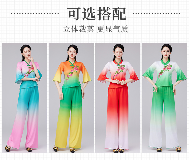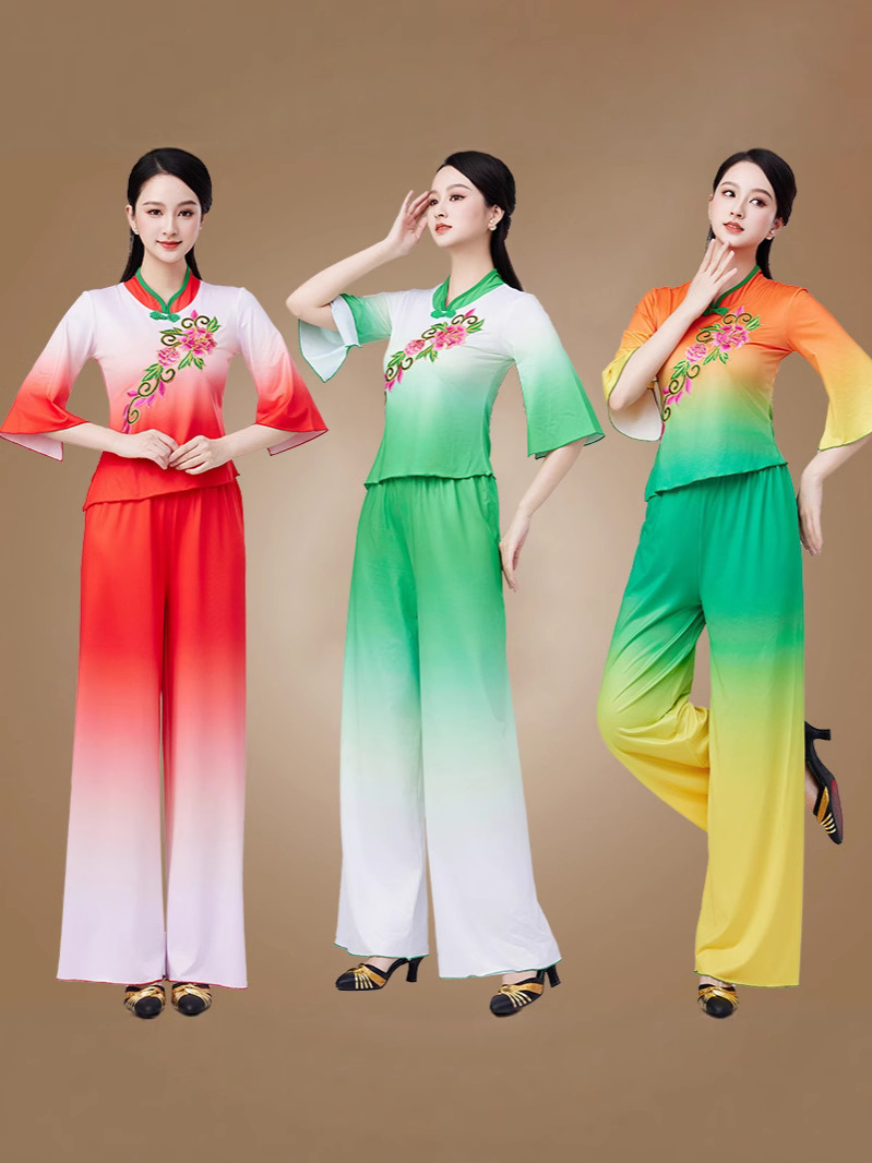 2025 Новый танцевальный костюм Yangko, классический танцевальный костюм для выступлений, женский элегантный этнический квадратный танец с веером, современный сольный танец