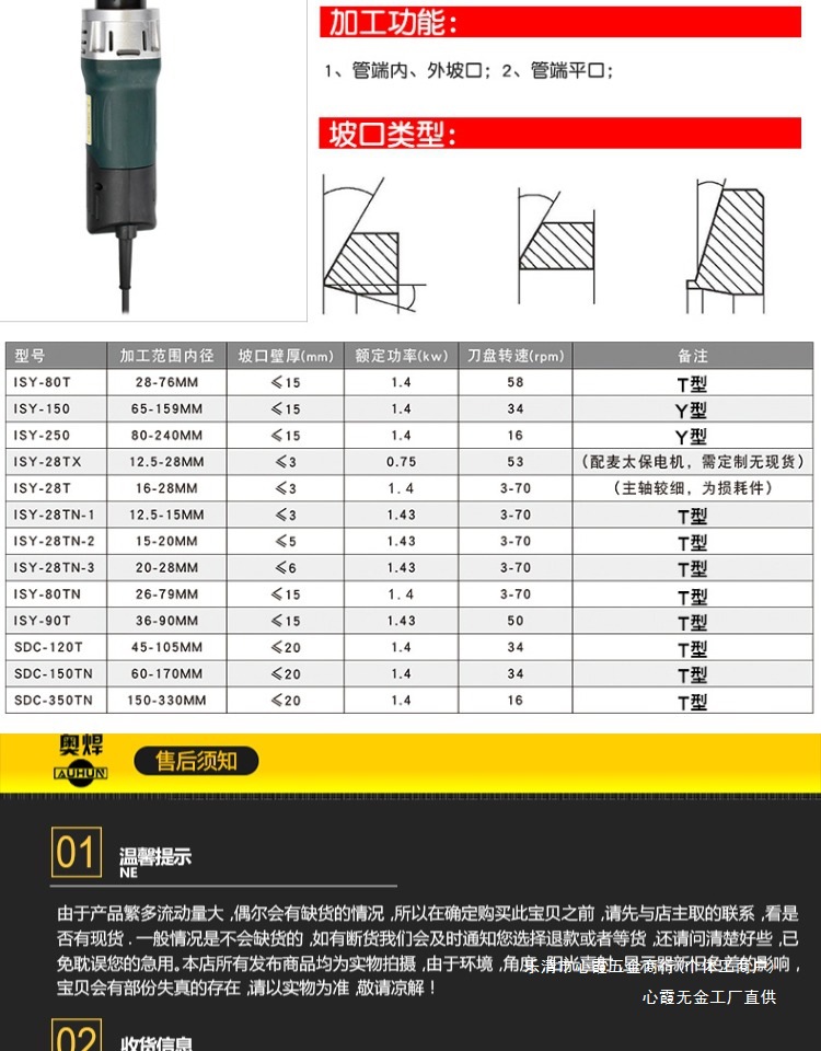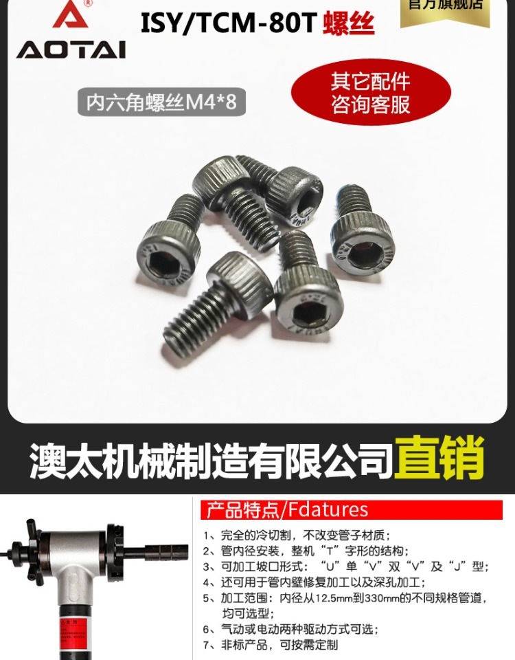 Электрическая кромкообрезная машина Aotai ISY80, машина для плоской снятия фаски труб, натяжной блок, клиновидный тяговый стержень, инструмент для снятия фаски, кромкообрезная машина Xinxia