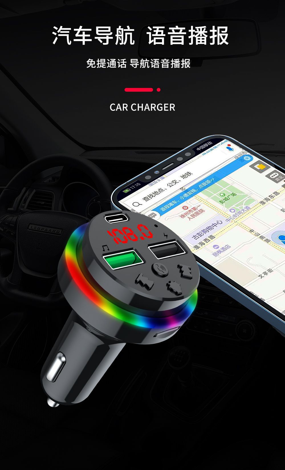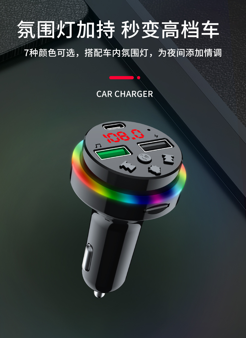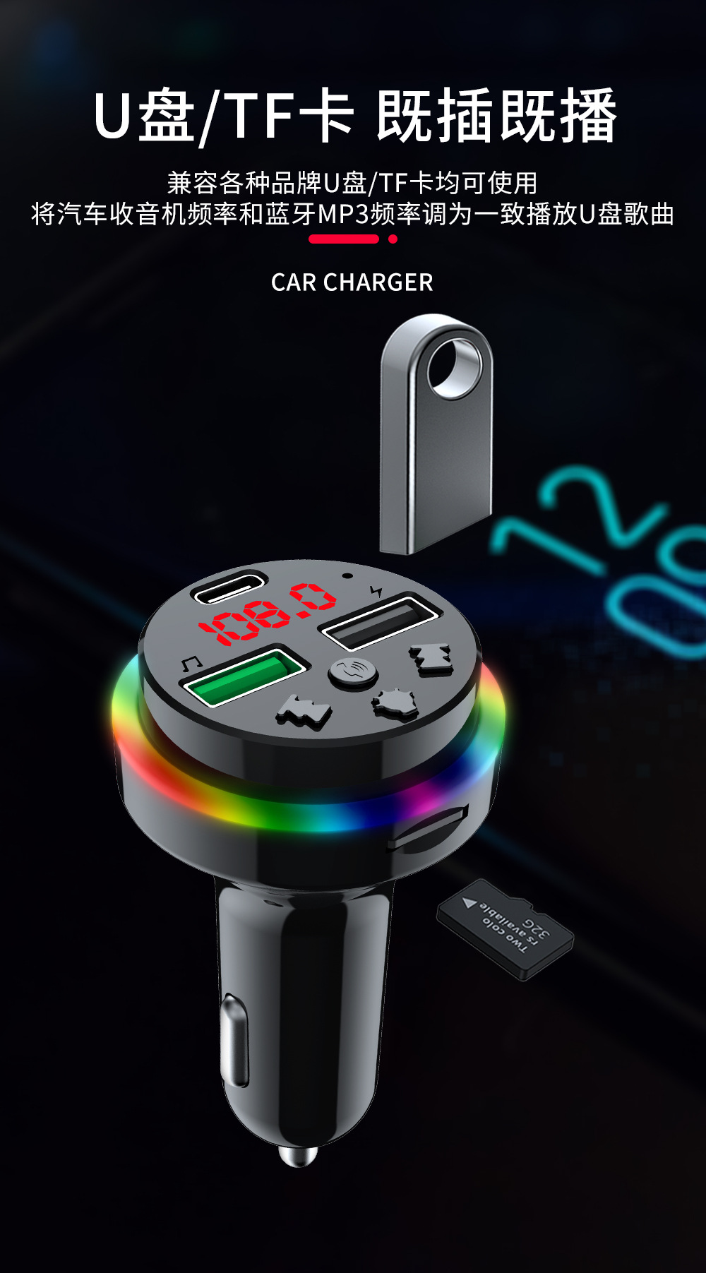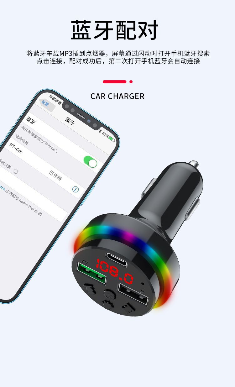 Автомобильное Bluetooth-зарядное устройство CAR-F15 FM-плеер можно использовать с TF-картой/U-диском, универсальное зарядное устройство для быстрой зарядки от одного до трех устройств