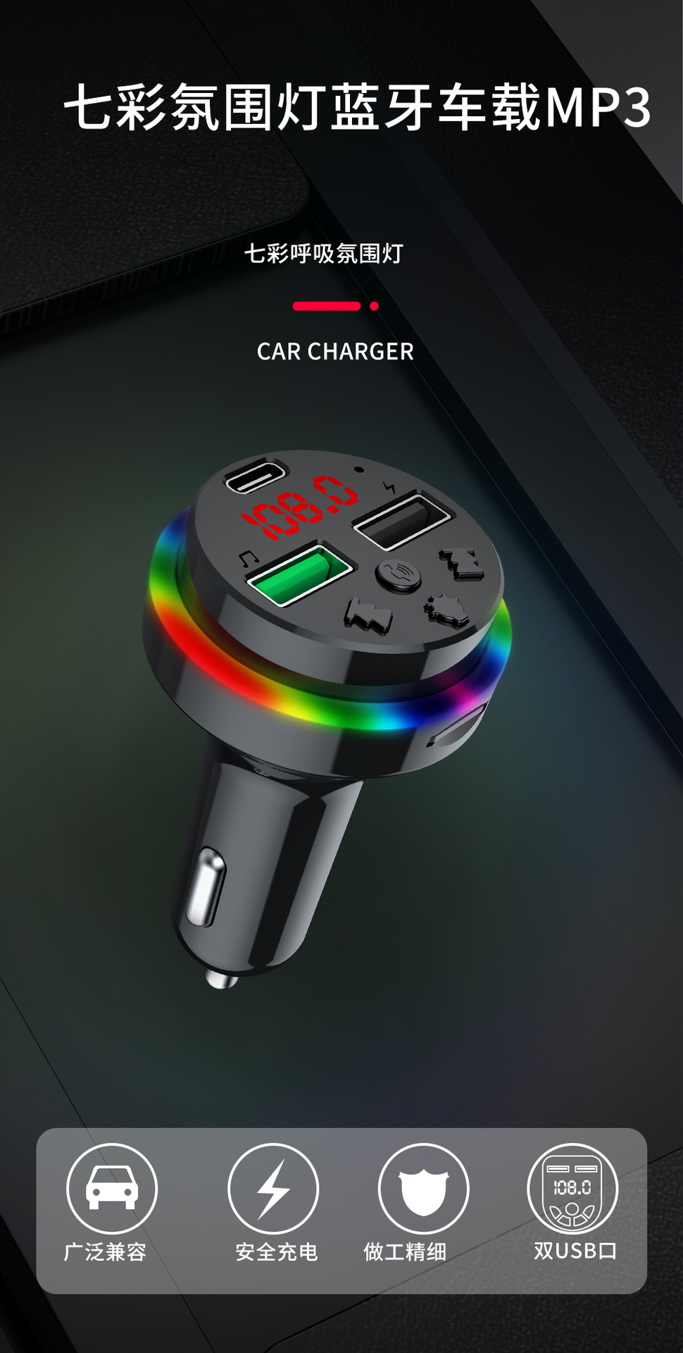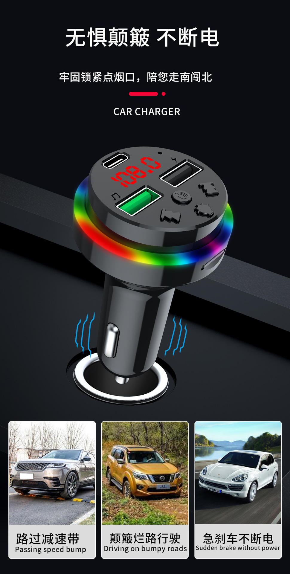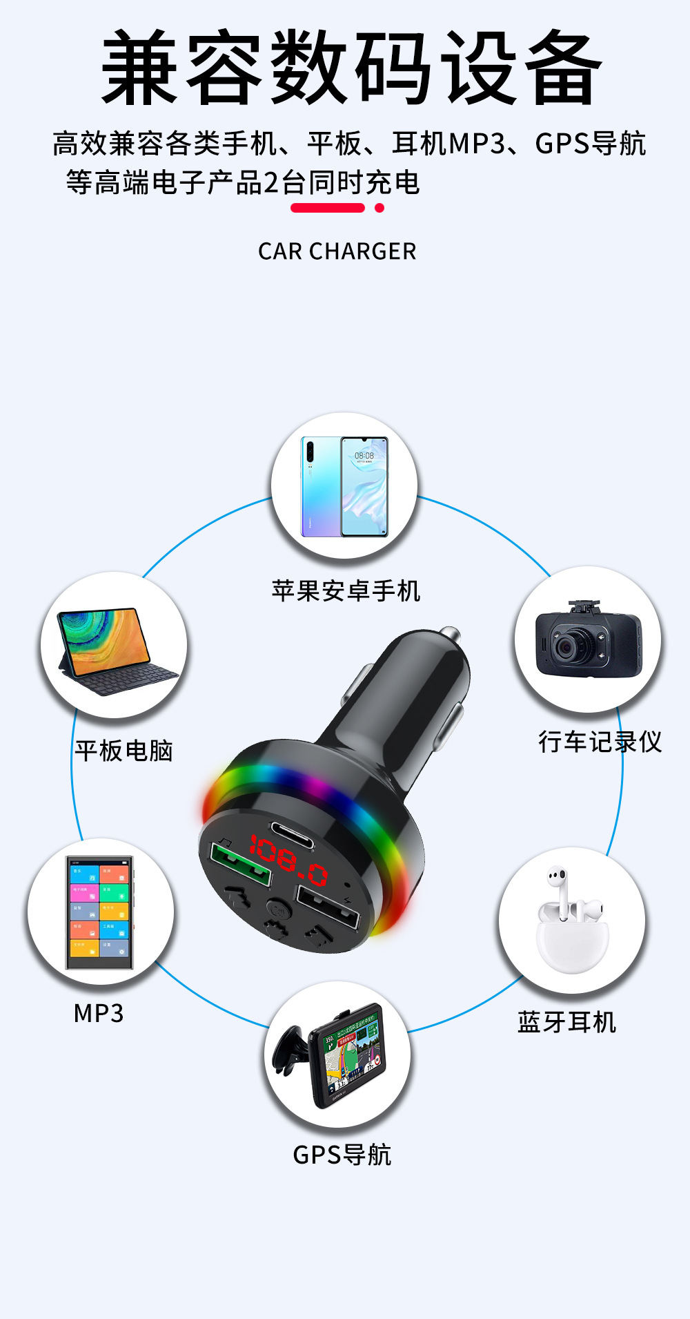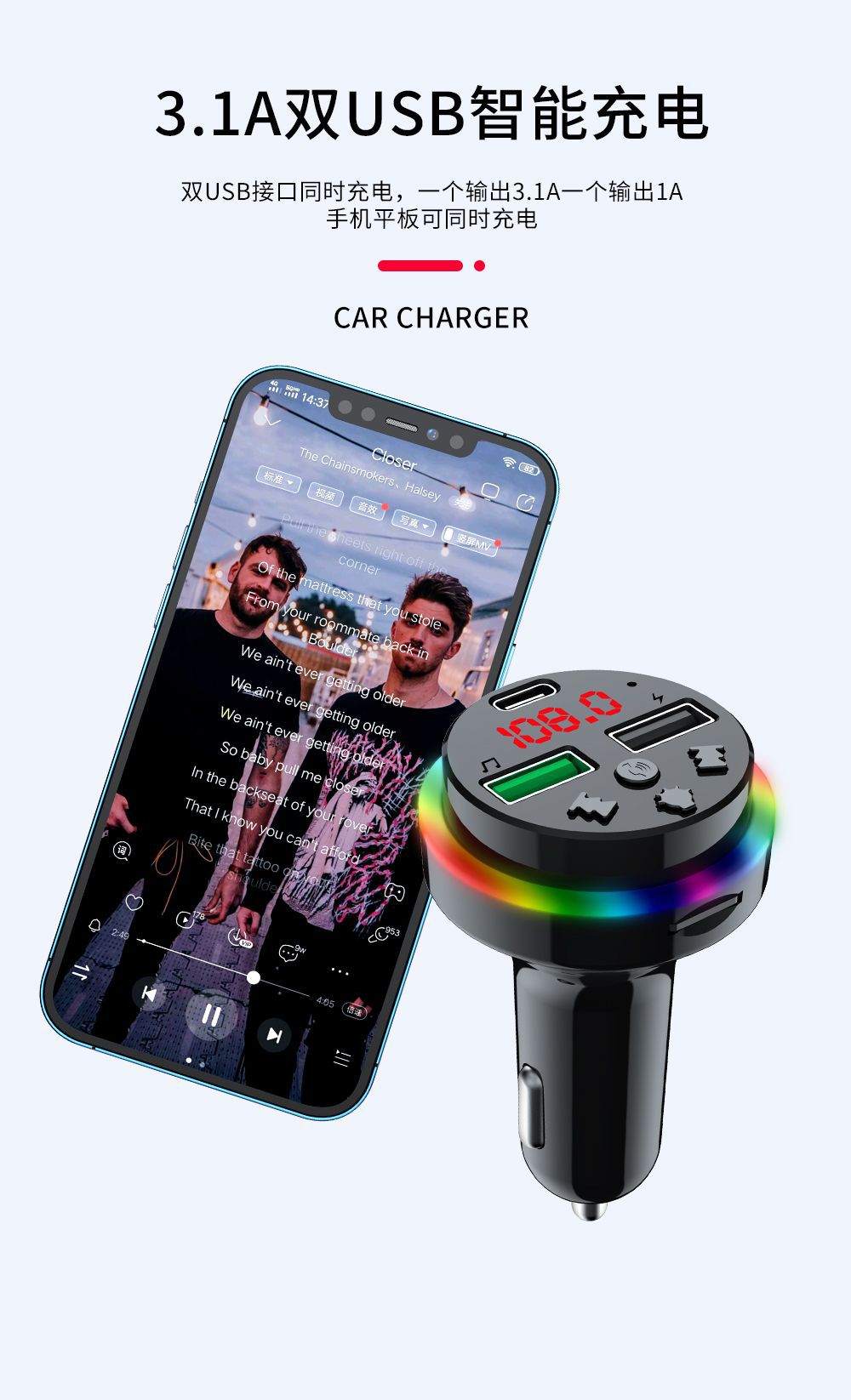 Автомобильное Bluetooth-зарядное устройство CAR-F15 FM-плеер можно использовать с TF-картой/U-диском, универсальное зарядное устройство для быстрой зарядки от одного до трех устройств