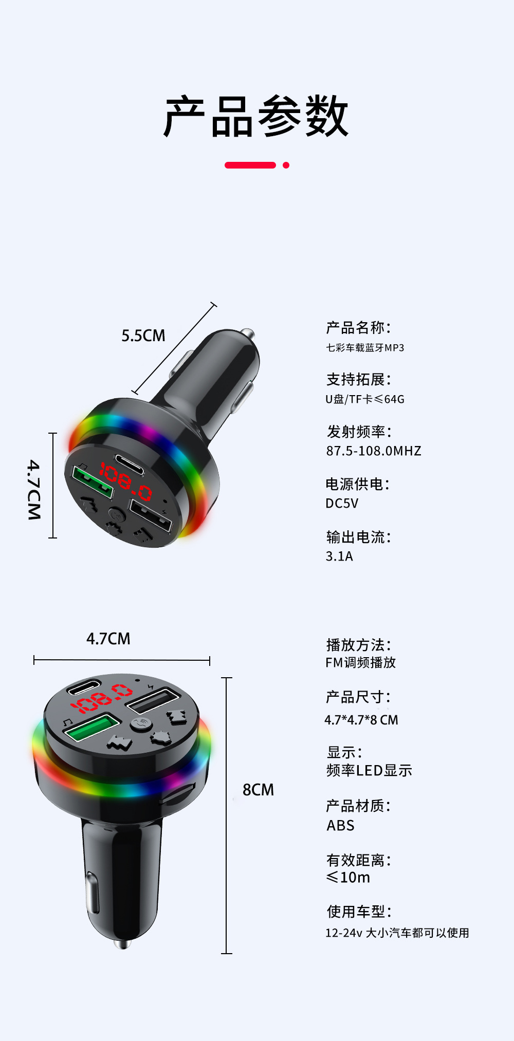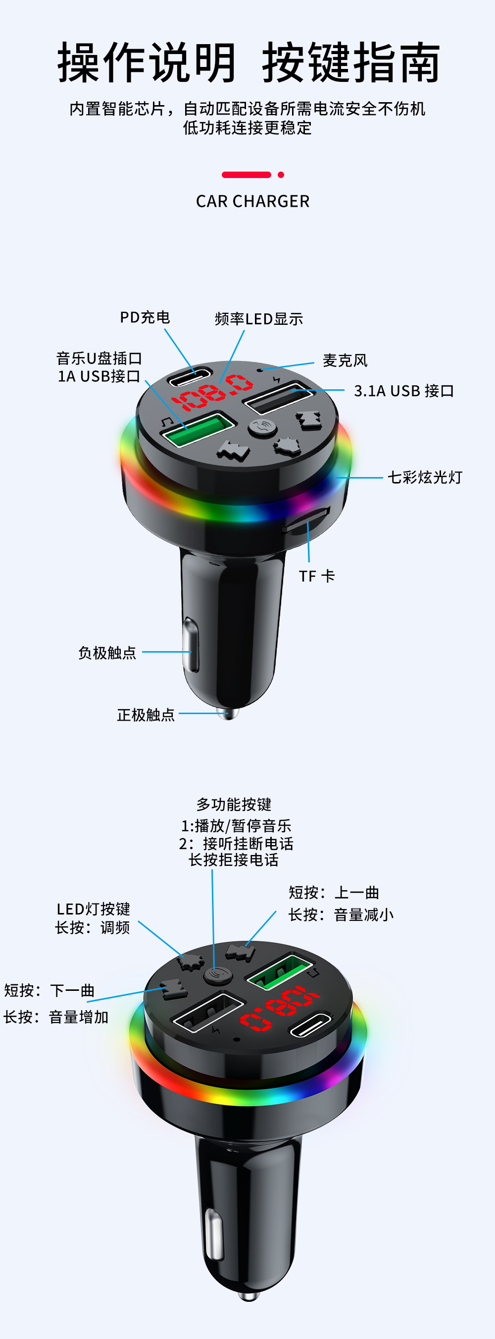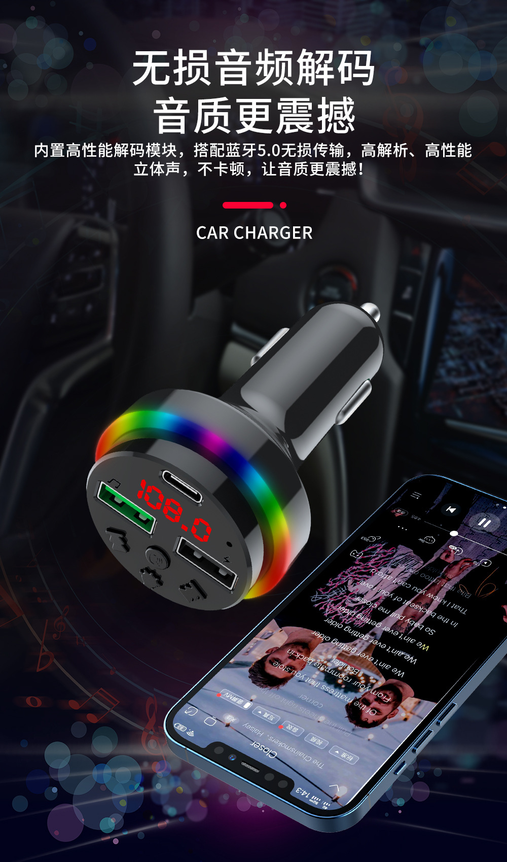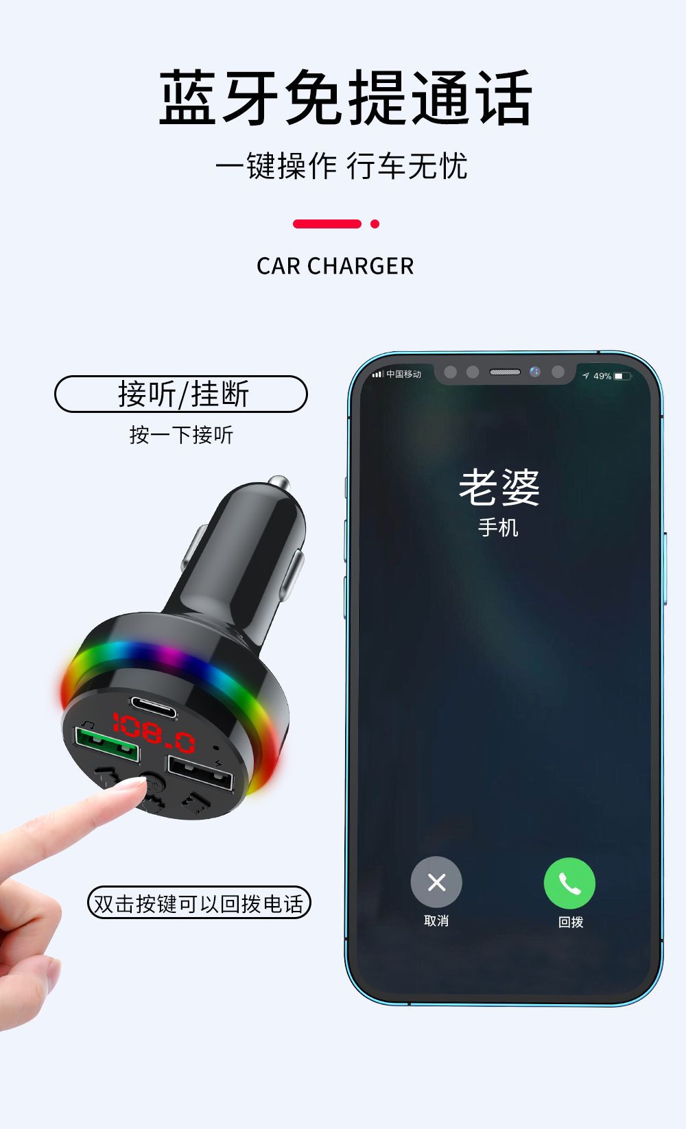 Автомобильное Bluetooth-зарядное устройство CAR-F15 FM-плеер можно использовать с TF-картой/U-диском, универсальное зарядное устройство для быстрой зарядки от одного до трех устройств