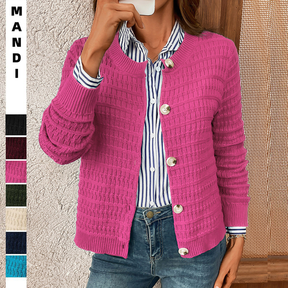 Амазонка 2025 трансграничная европейская и американская осень новая женская одежда сплошной цвет коммутирующих трикотажных кардиган повседневный свитер куртка