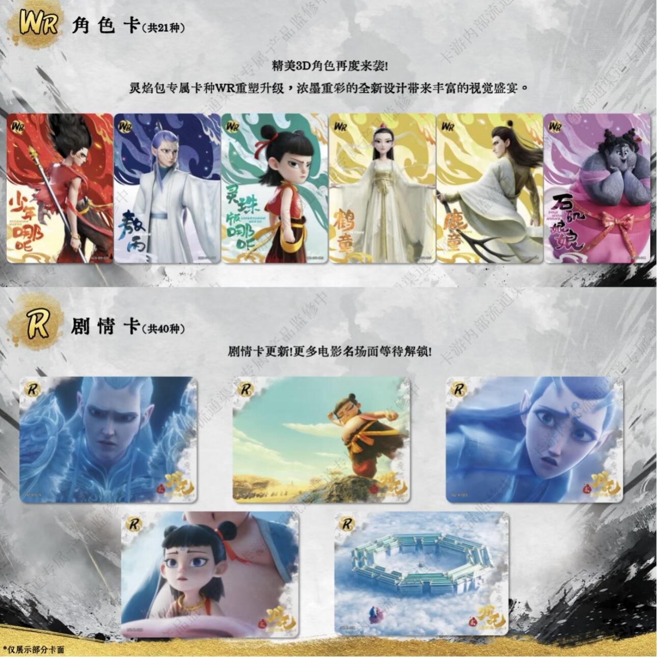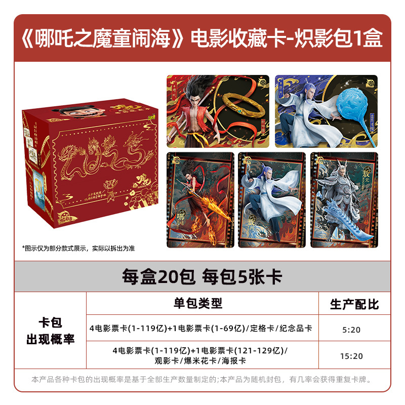 Второй раунд пакета Nezha Dou Tian Pack [Полная коробка из 18 упаковок по 90 штук]; Nezha Dou Tian Pack [Полная коробка из 18 упаковок по 90 листов]; Nezha Chiying Pack [Полная коробка из 20 упаковок по 100 листов]; Вторая партия Nezha Spirit Flame Pack [Полная коробка из 30 упаковок по 120 штук]; Nezha Spirit Flame Pack [Полная коробка из 30 упаковок по 120 листов]; Карточная книга Нежа [80 слотов для карт могут вместить 160 карт]