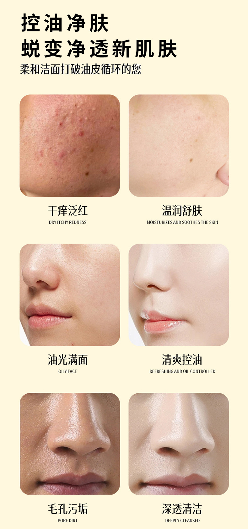 Контроль масла; Увлажнение; увлажнять; Глубокая очистка; Успокойте кожу; Мягкая кожа