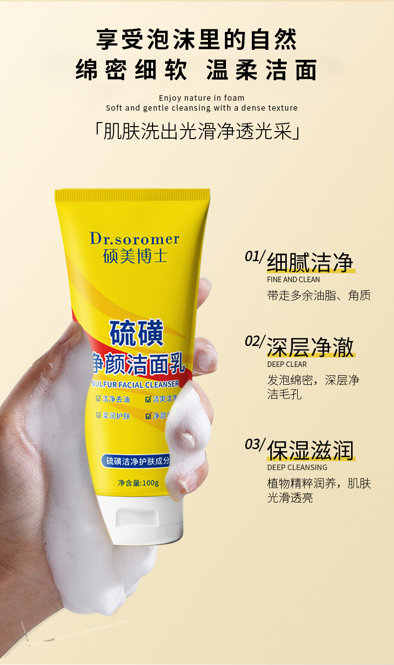 Dr. Shuomei Sulfur Purifying Facial Cleanser 100 г Глубоко очищающее увлажняющее средство для контроля жирности Увлажняющее очищающее средство для лица Hot Style