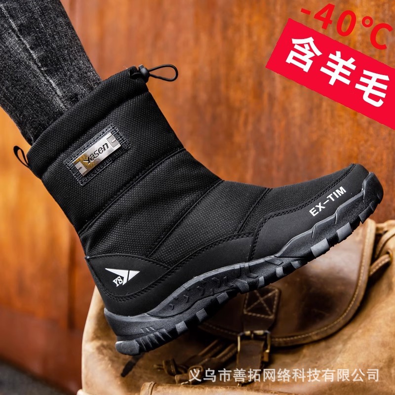 Утолщенные зимние ботинки на минус 40 градусов, мужские бархатные зимние хлопковые туфли, теплые водонепроницаемые противоскользящие высокие сапоги