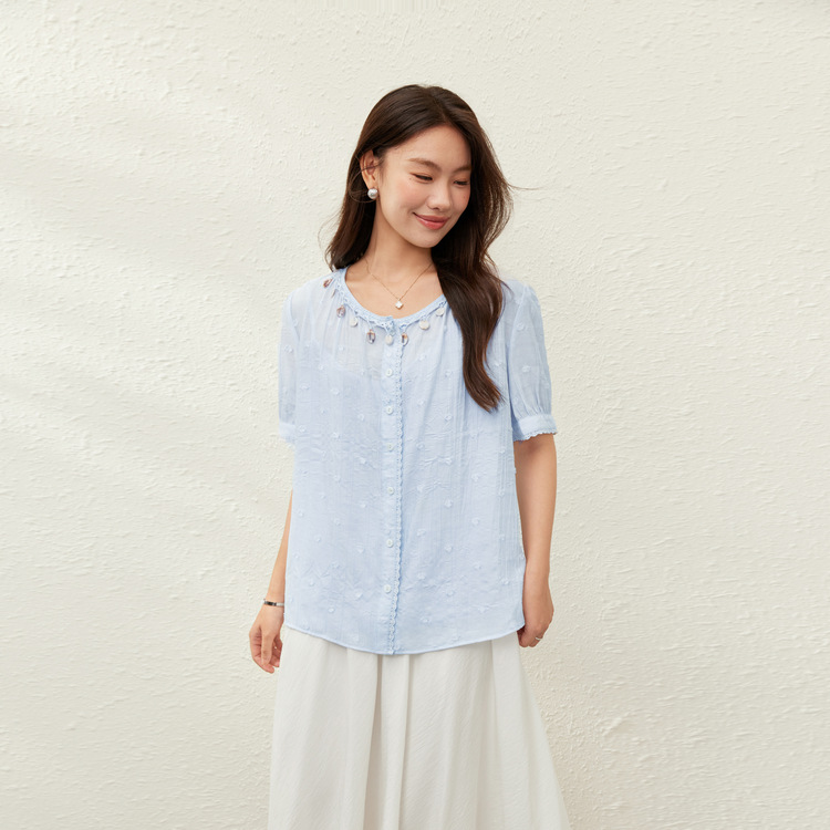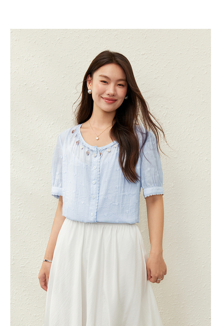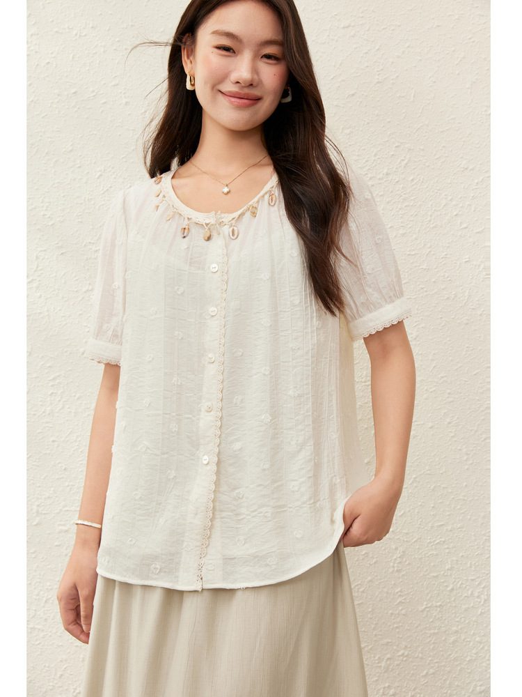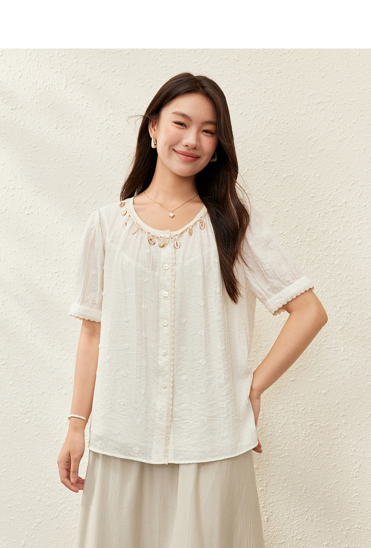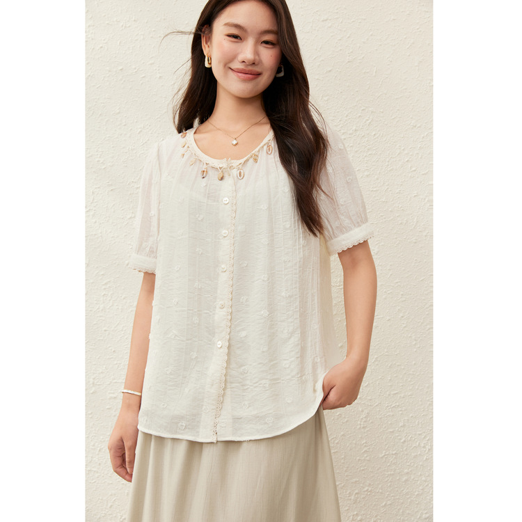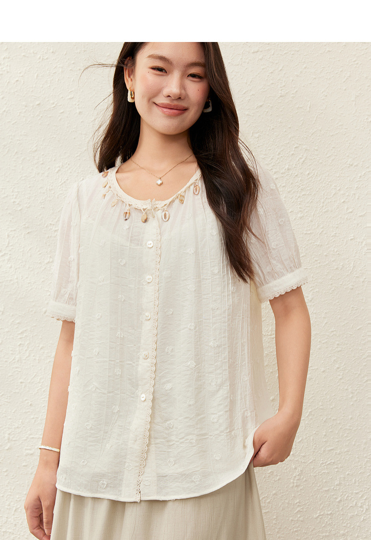 [Шикарная кружевная рубашка во французском курортном стиле] Тонкая женская одежда больших размеров, летний новый стиль, мм2025