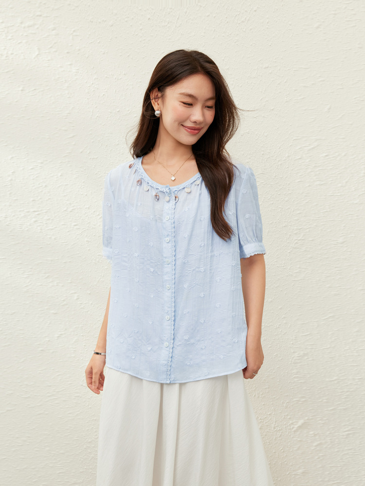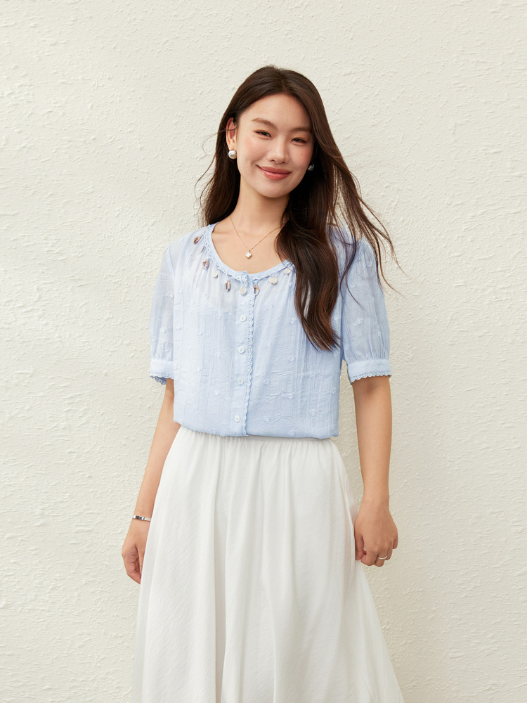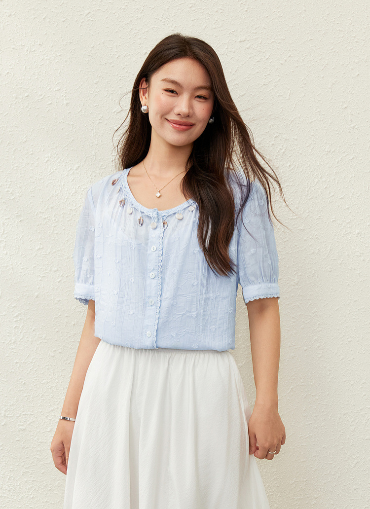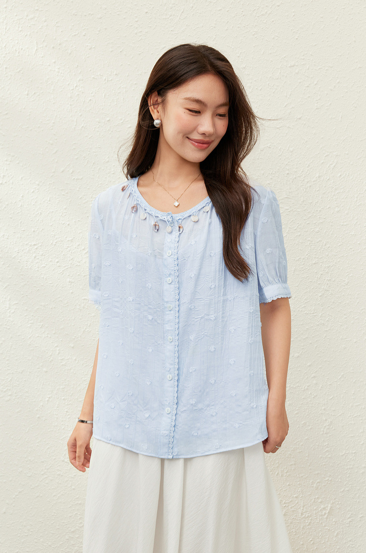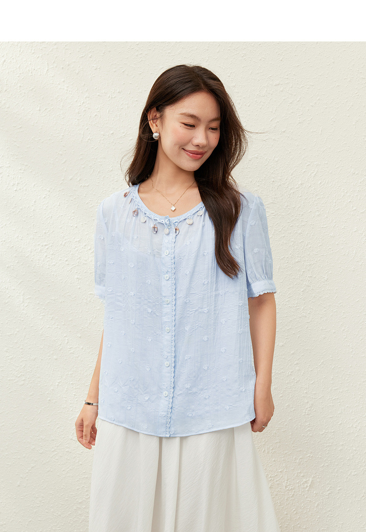 [Шикарная кружевная рубашка во французском курортном стиле] Тонкая женская одежда больших размеров, летний новый стиль, мм2025