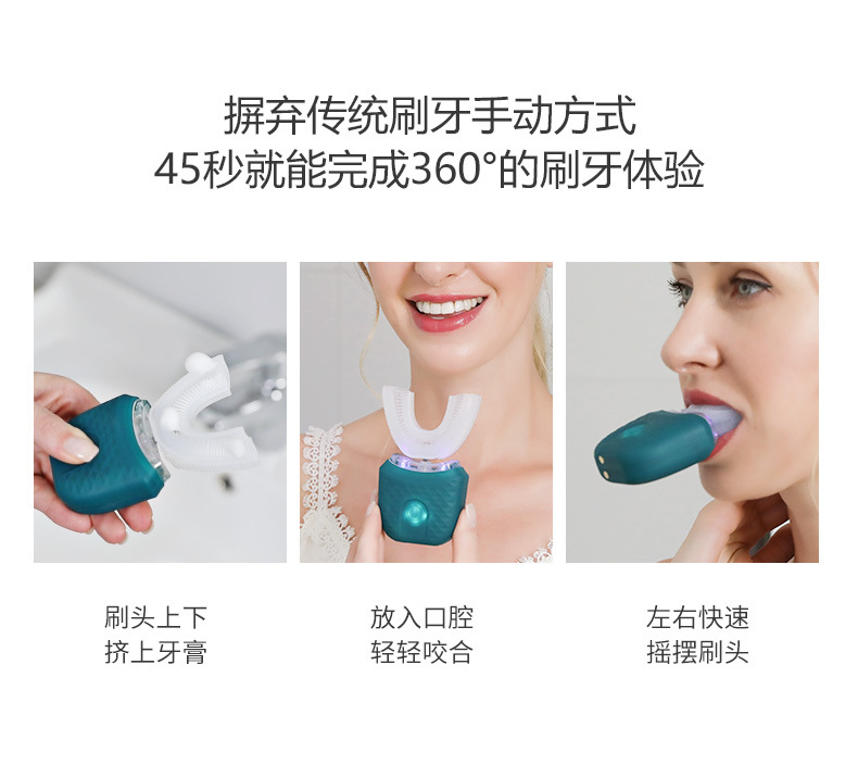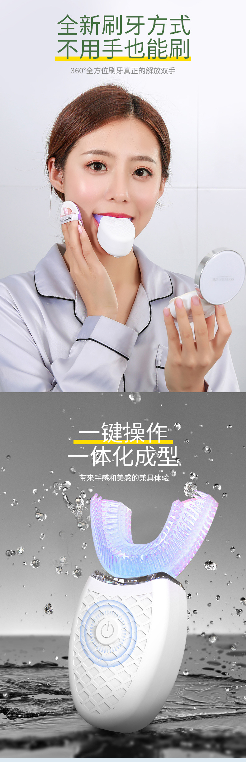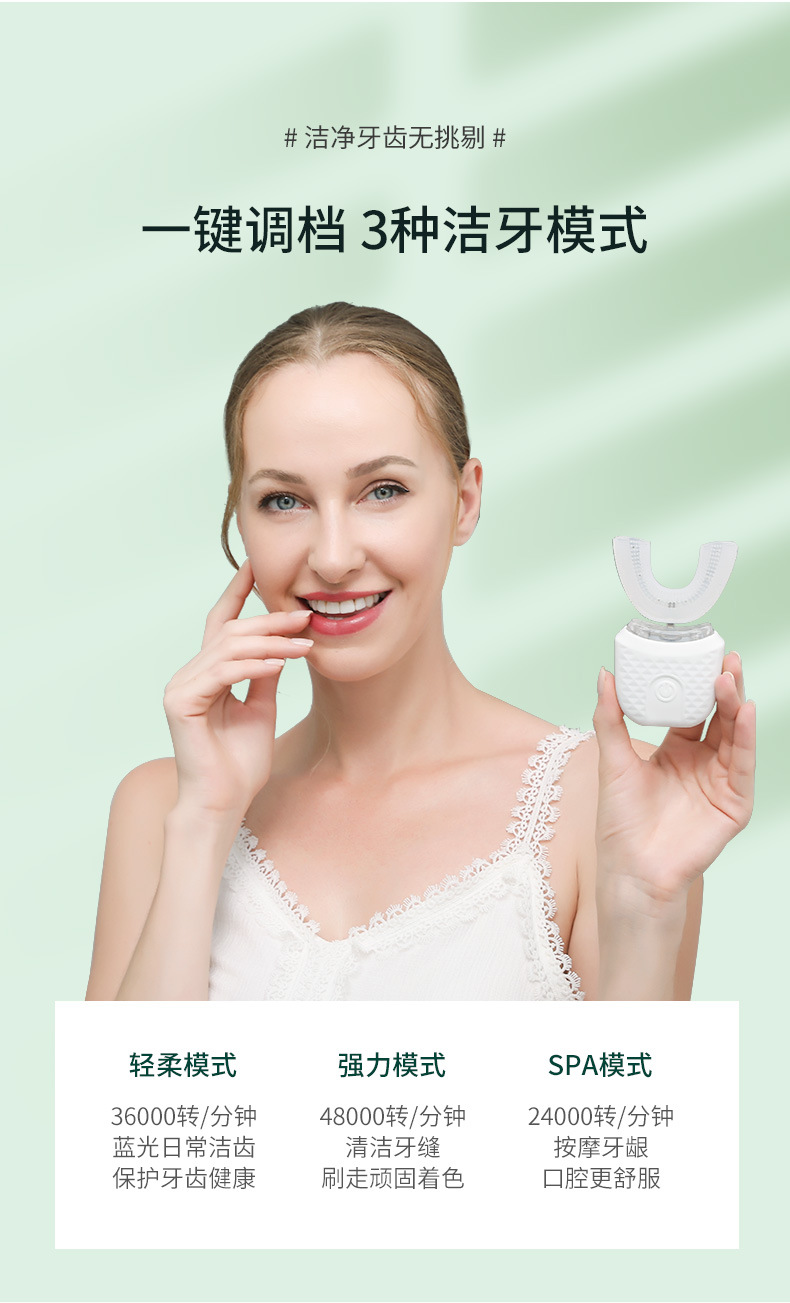 Трансграничная U-образная электрическая зубная щетка для взрослых, полностью автоматическая водонепроницаемая, моющаяся для всего тела, ультразвуковой очиститель полости рта для ленивых
