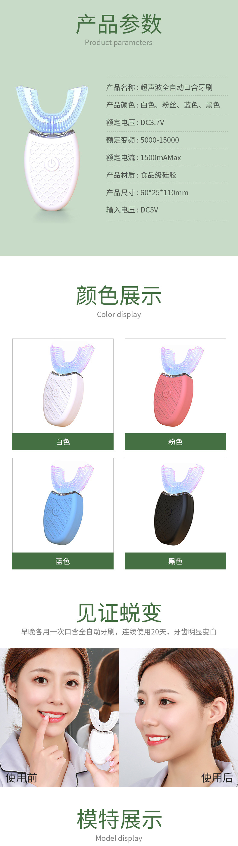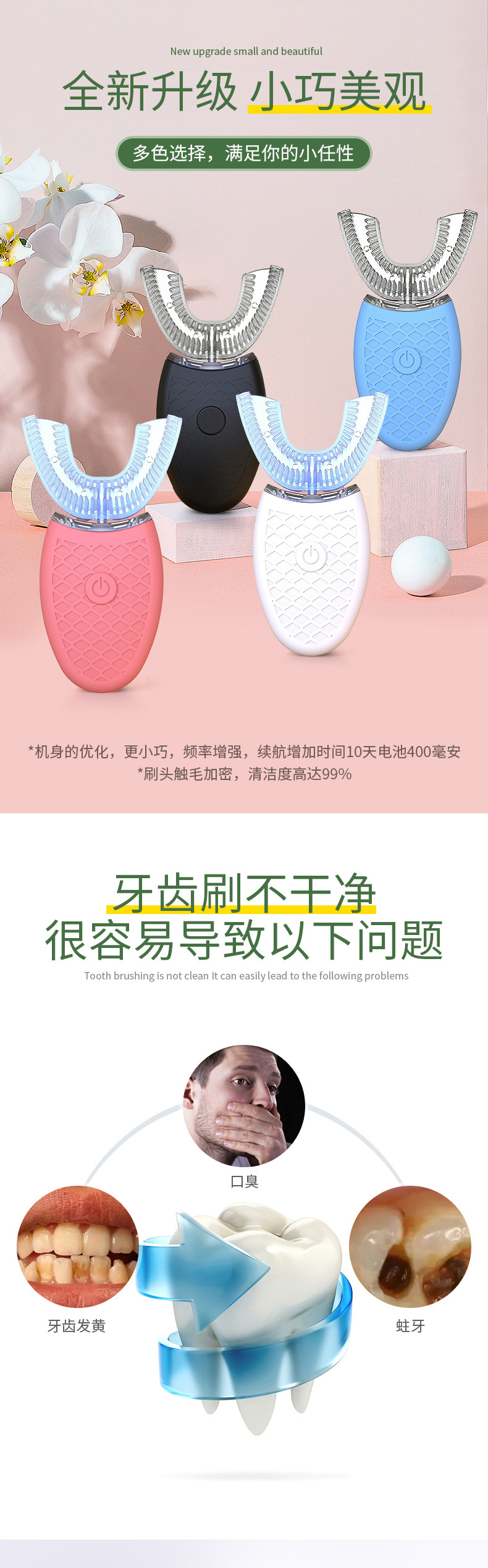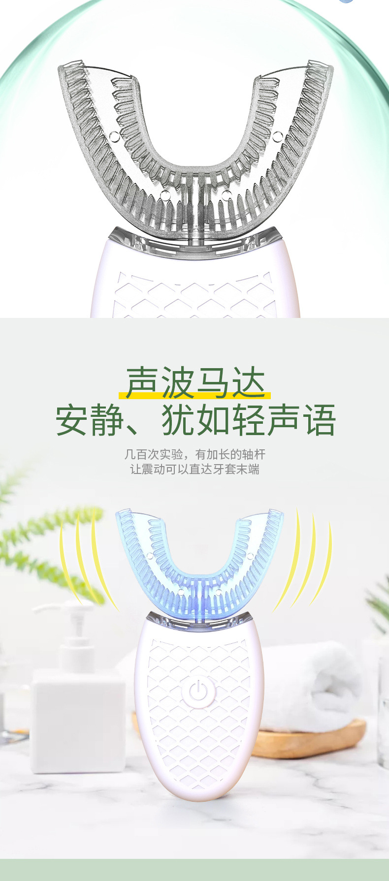 Трансграничная U-образная электрическая зубная щетка для взрослых, полностью автоматическая водонепроницаемая, моющаяся для всего тела, ультразвуковой очиститель полости рта для ленивых