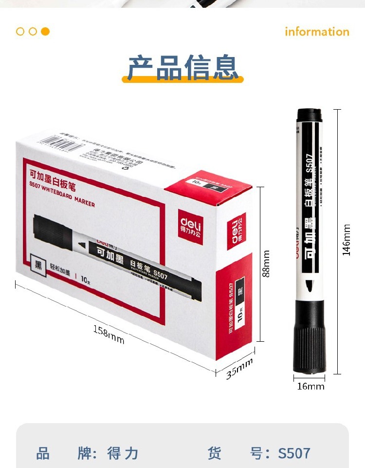Ручка для доски Deli S507 (черная) для офисного обучения, конференций, обучения, дисплея, высококачественная ручка для доски большой емкости
