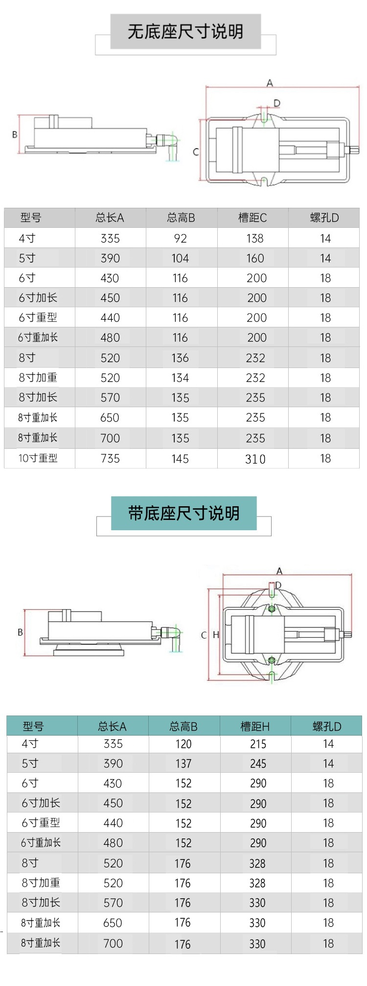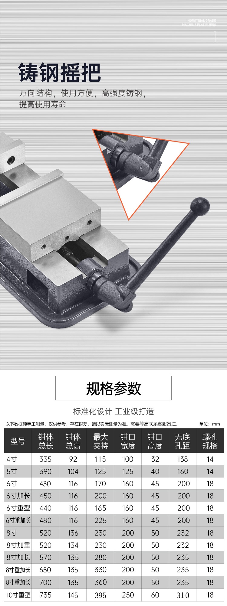 4inch отверстия 120 мм [сверхпрочный утолщенный импортный материал]; 5inch отверстия 155 мм [сверхпрочный утолщенный импортный материал]; 6inch Т-образный винт, отверстие 175 мм [стандартный тип]; 6inch Т-образный винт, отверстие 175 мм [сверхпрочный утолщенный импортный материал]; 6inch Т-образный винт, отверстие 165 мм [полностью закрытый сверхмощный, специальная цена]; 6inch Т-образный винт, диаметр отверстия 165 мм [полностью закрытый для тяжелых условий эксплуатации]; 6inch Утяжеленное отверстие 165 мм [Полностью закрытое утолщение для тяжелых условий эксплуатации - импортный материал]; 6inch Т-образный винтовой удлинитель, отверстие 200 мм [утолщение для тяжелых условий эксплуатации - импортный материал]; 8inch сверхмощный Т-образный винт без дна, отверстие с твердым дном 235 мм.; 8inch Т-образный винт, отверстие 230 мм [мощная полностью закрытая импульсная модель]; 8inch Т-образный винт, отверстие 230 мм [полностью закрытое усиление для тяжелых условий эксплуатации - импортный материал]]; 8inch Т-образный винт, отверстие 280 мм [удлинитель для тяжелых условий эксплуатации]; 8inch Т-образный винт, отверстие 280 мм [утяжеленный и удлиненный - импортный материал]; 8inch Т-образный винт, отверстие 290 мм [удлинитель для тяжелых условий эксплуатации]; 8inch Т-образный винт, отверстие 300 мм [удлинитель для тяжелых условий эксплуатации]; 8inch Т-образный винт, отверстие 330 мм [удлинитель для тяжелых условий эксплуатации]; 8inch Т-образный винт, отверстие 330 мм [утяжеленный и удлиненный - импортный материал]; 8inch Т-образный винт, отверстие 348 мм [удлинитель для тяжелых условий эксплуатации]; 8inch Т-образный винт, отверстие 360 мм [удлинитель для тяжелых условий эксплуатации]; 10inch Самоцентрирующиеся тиски, отверстие 300 мм.; 4inch Сверхмощный [с основанием] отверстие 115 мм; 5inch Сверхмощный [с основанием] отверстие 125 мм; 6inch Т-образный винт [с основанием], отверстие 170 мм.; 6inch винт Т-образного типа [удлиненный с основанием], отверстие 200 мм.; 6inch Сверхмощный [расширенный с основанием] отверстие 225 мм; 6inch Т-образный сверхмощный [полностью закрытый с основанием] отверстие 170 мм; 6inch [Полностью закрытый с основанием] Прочный импортный материал, отверстие 170 мм.; 8inch [С основанием] Отверстие 230 мм; 8inch сверхмощный Т-образный винтовой стержень [с основанием], отверстие 230 мм.; 8inch сверхпрочный Т-образный винтовой стержень [с основанием] отверстие 230 мм [полностью закрытое усиление для тяжелых условий эксплуатации - импортный материал]; 8inch Т-образный винт, диаметр отверстия 280 мм [сверхмощный удлинитель с основанием]; 8inch Т-образный винт, 330 мм [сверхмощный удлинитель с основанием]; 8inch Т-образный винт, открываемый на 360 мм [сверхмощный удлинитель с основанием]; Гладкие интегрированные плоскогубцы повышенной прочности 4inch; Гладкие интегрированные плоскогубцы повышенной прочности 6inch; Двусторонние тиски 4inch для тяжелых условий эксплуатации; Двусторонние тиски 6inch для тяжелых условий эксплуатации; 6inch отверстия 0-160 чистый ковкий чугун