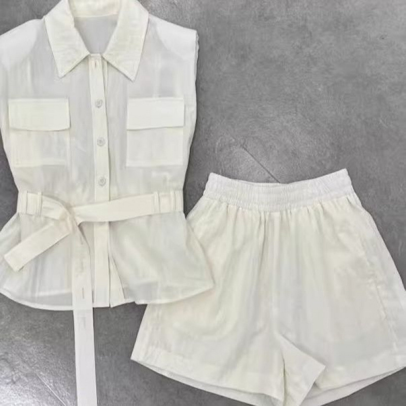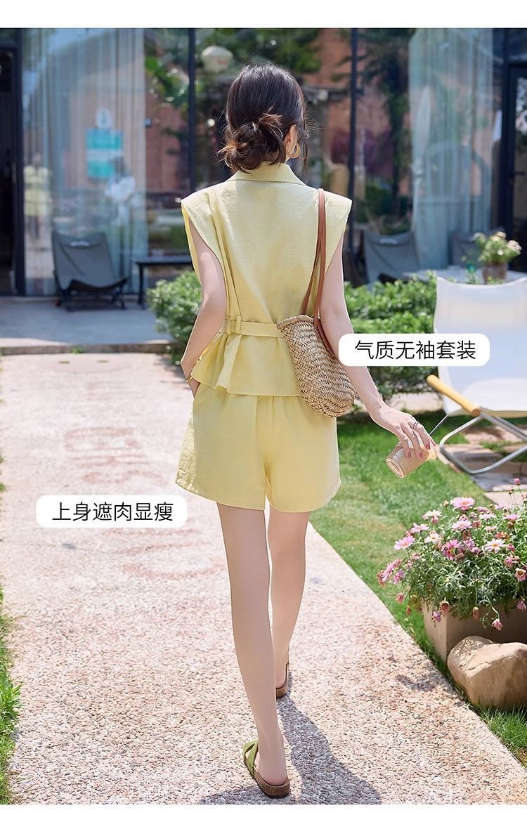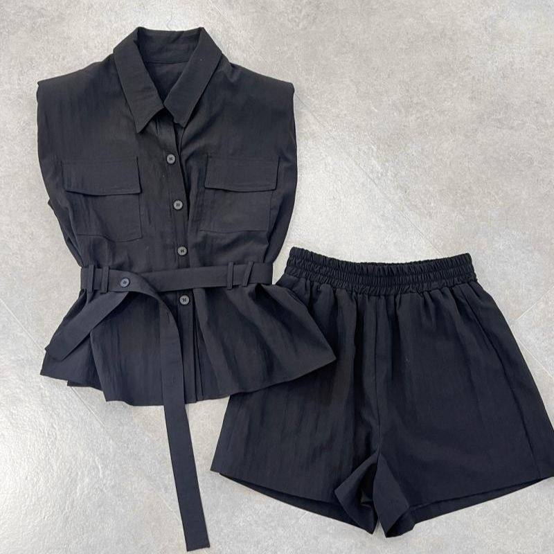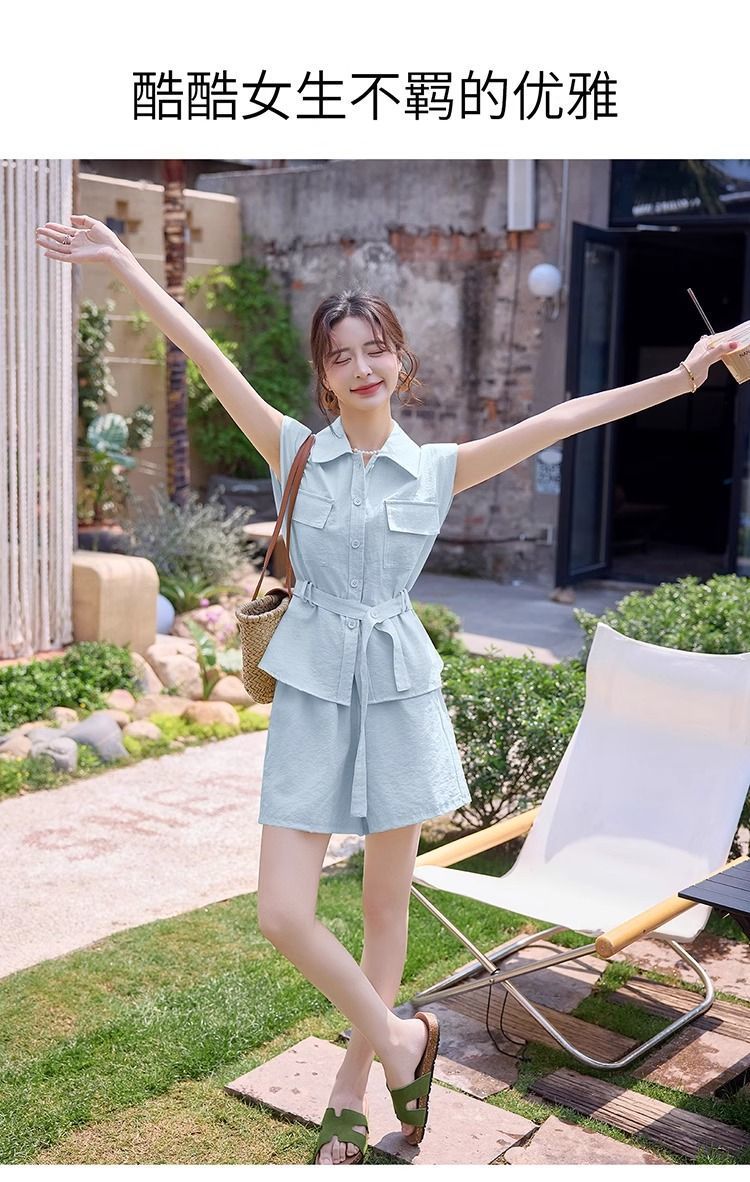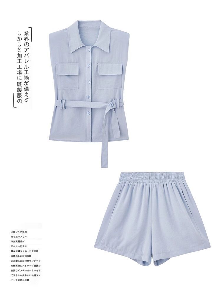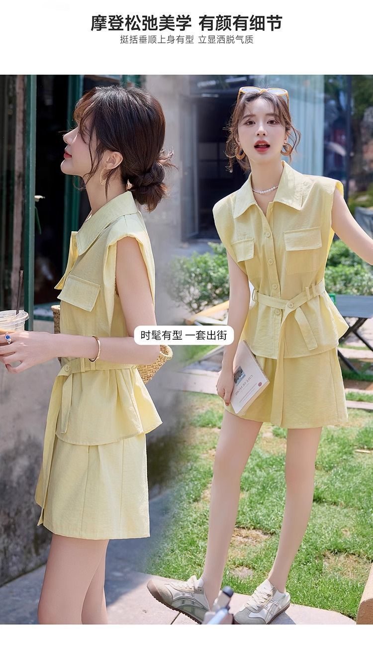 Летний костюм-двойка в корейском стиле 2025 года: рубашка и шорты, макаронные цвета, молодежный, стройнящий, для поездок на работу.