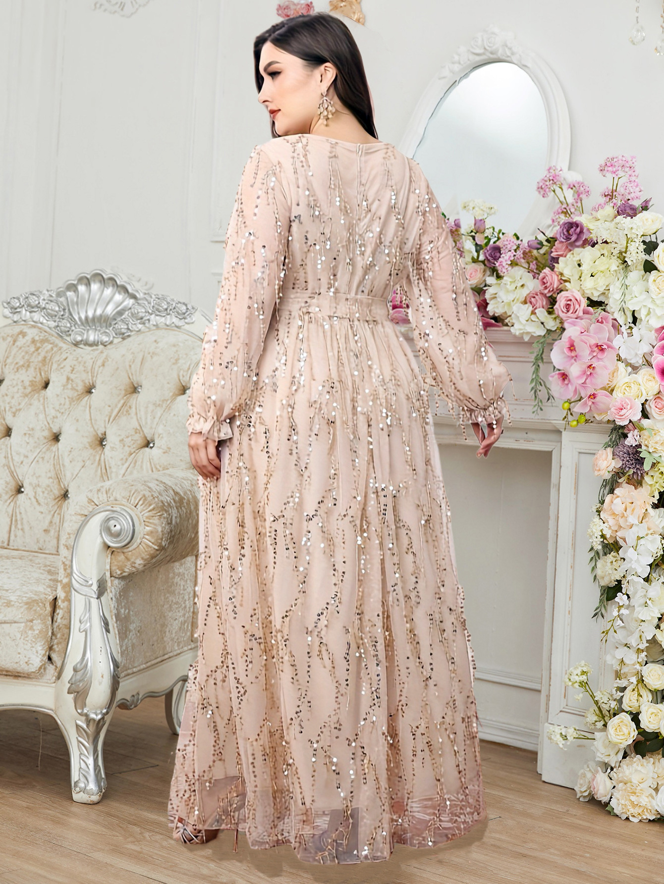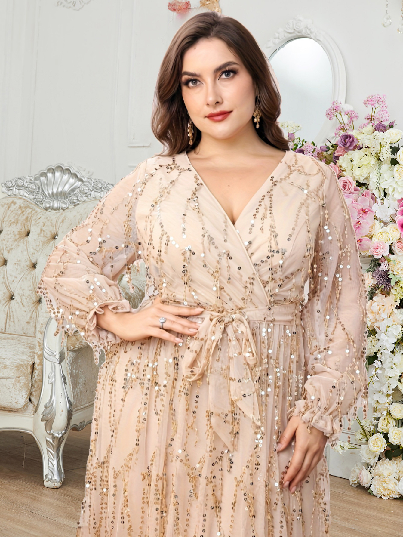 Пышное свадебное платье больших размеров с длинными рукавами, пайетками, бахромой, высокой талией и V-образным вырезом, лёгкое и элегантное платье для мамы на Амазонке.