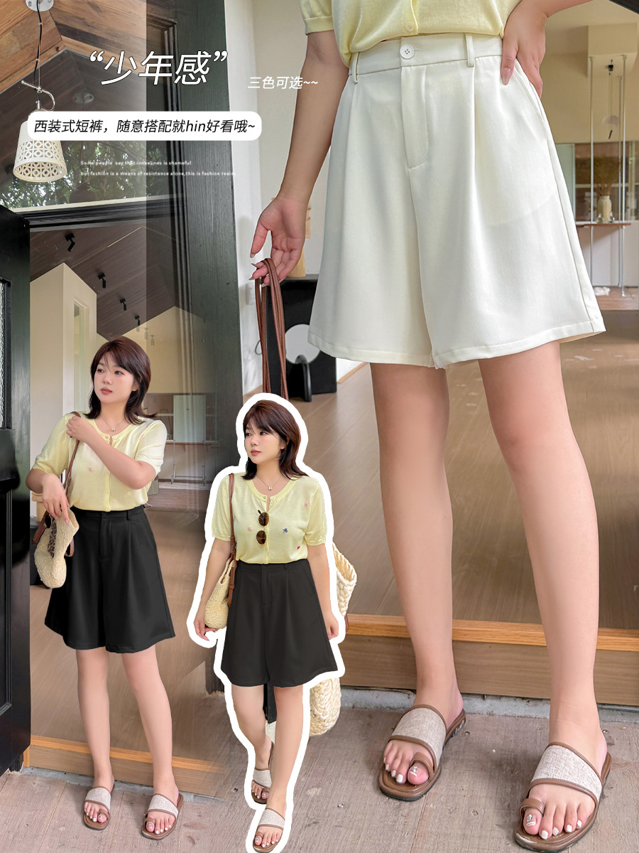 Eno женские большие размеры в корейском стиле с высокой талией и широкими шортами, новинка лета 2025, повседневные узкие брюки 252635