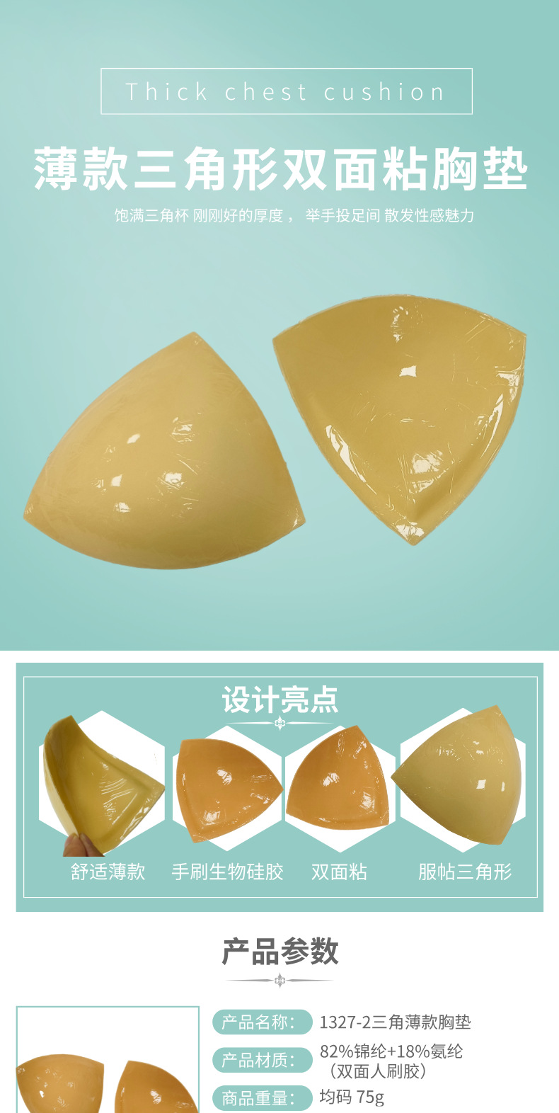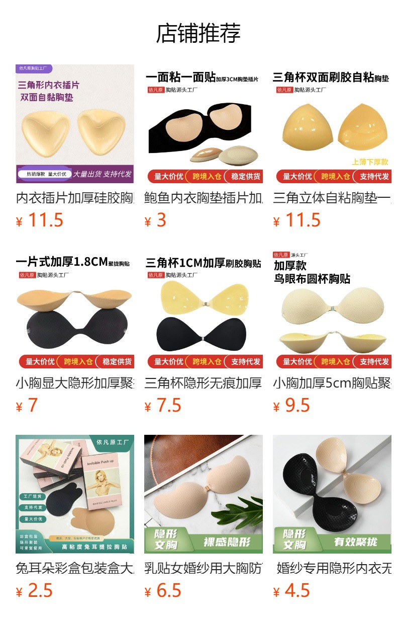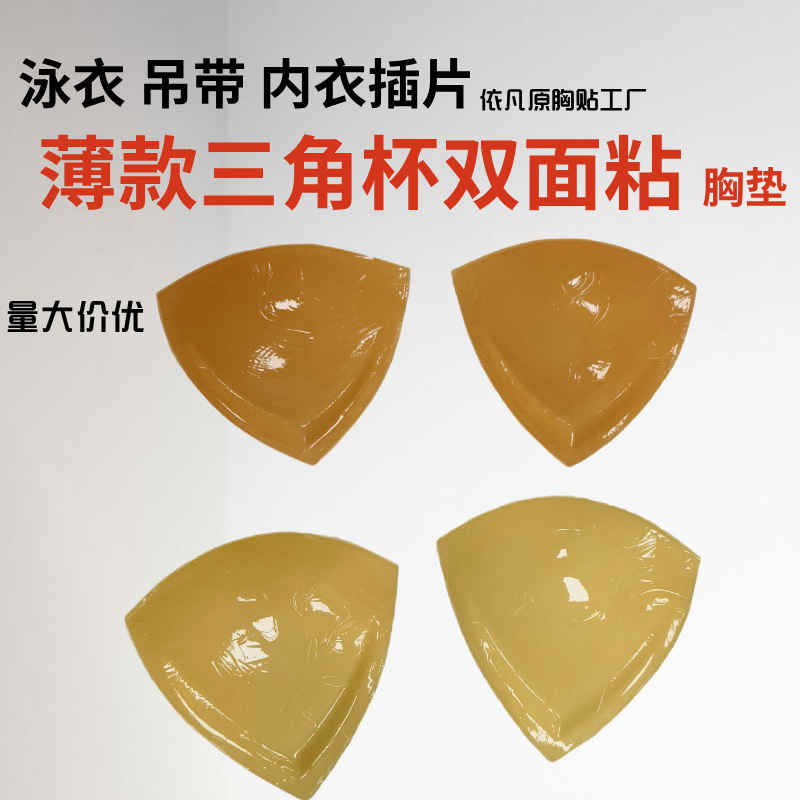 泳衣双面刷胶防凸点薄款硅胶胸垫批发 自粘三角杯文胸内衣插片