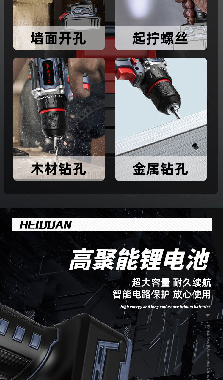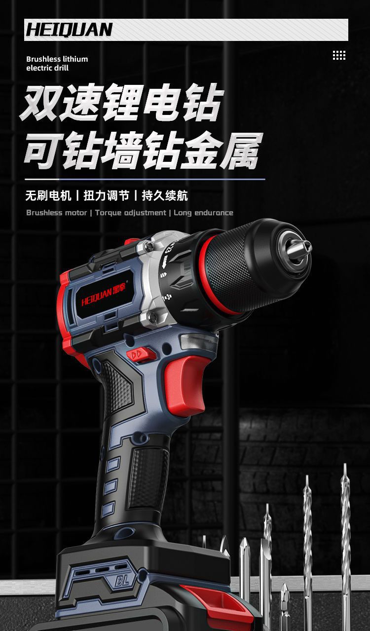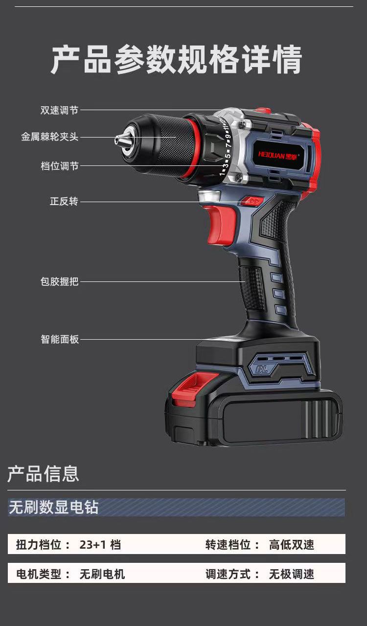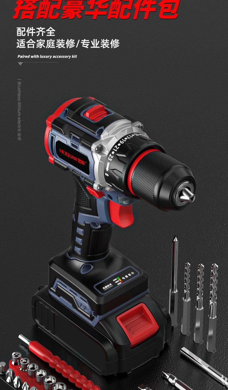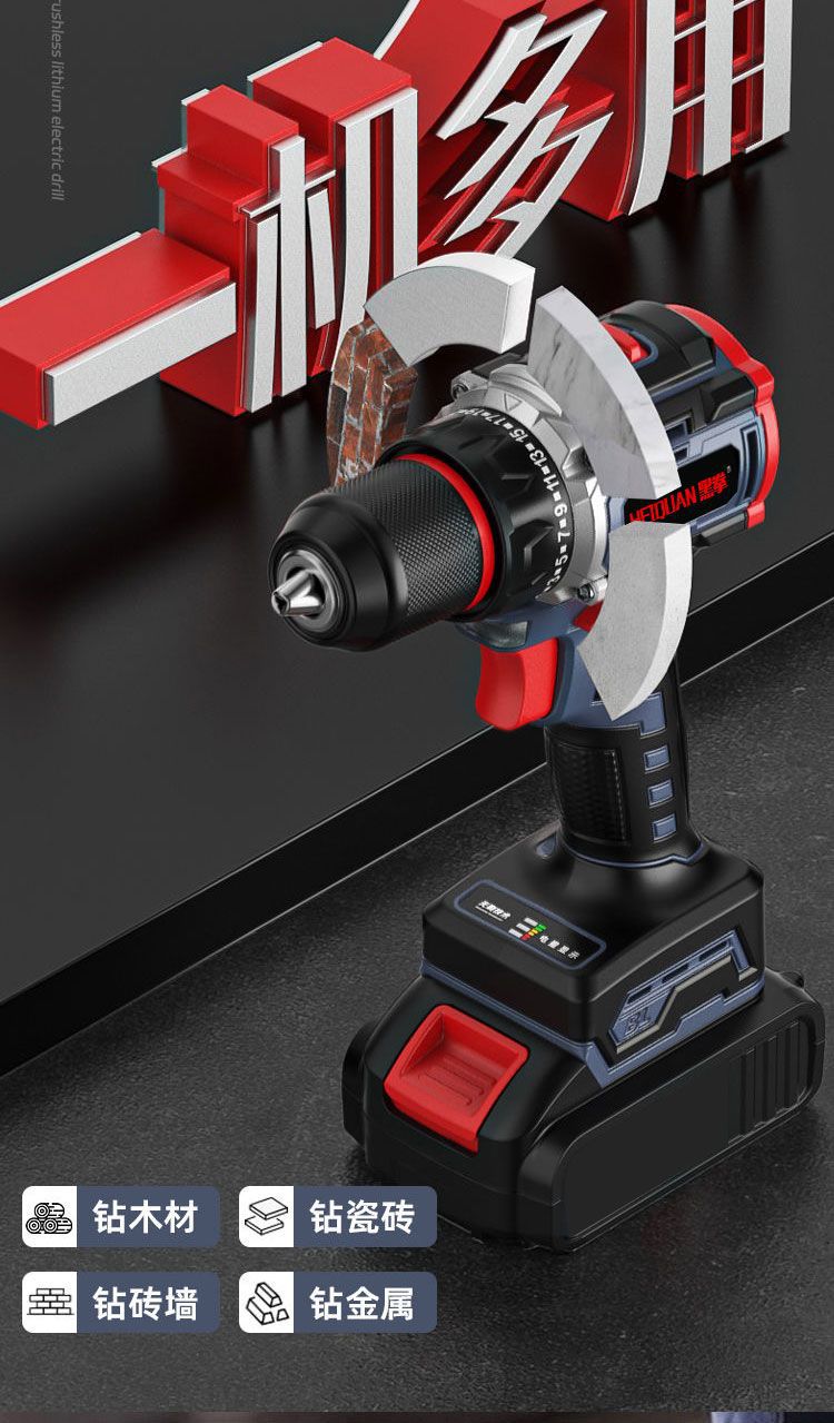 Бесщеточная ручная дрель для бытовой электрической дрели, перезаряжаемый инструмент, литиевая батарея, многофункциональная ударная пистолетная дрель, электрическая отвертка