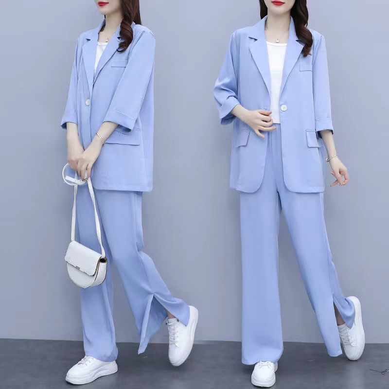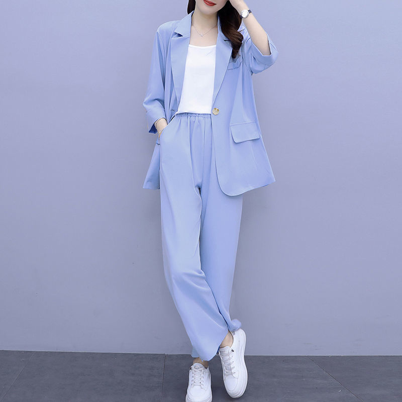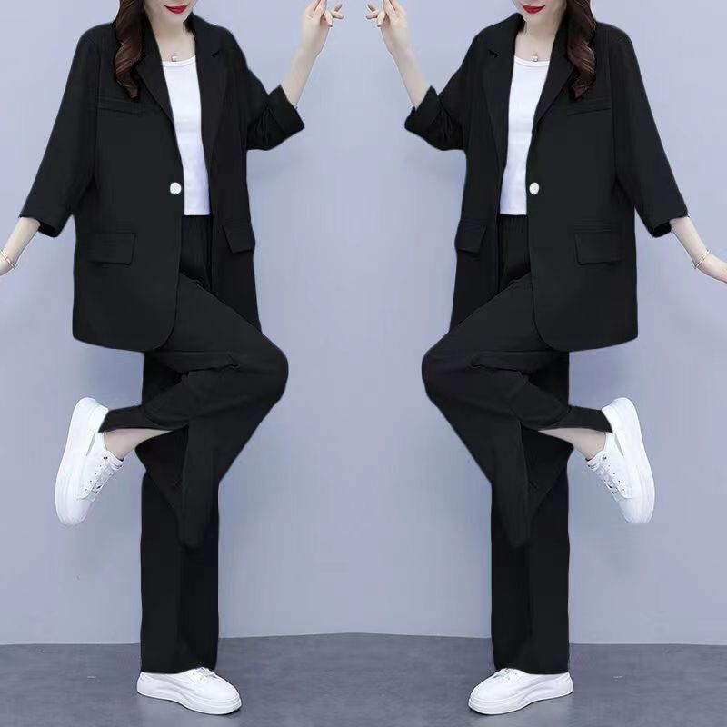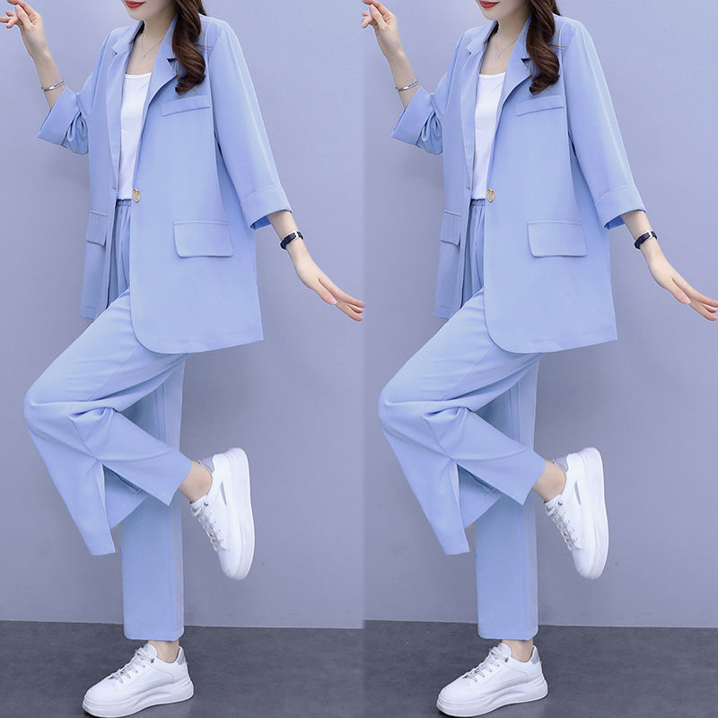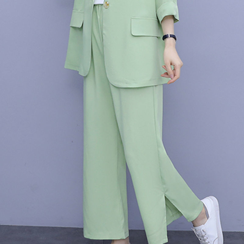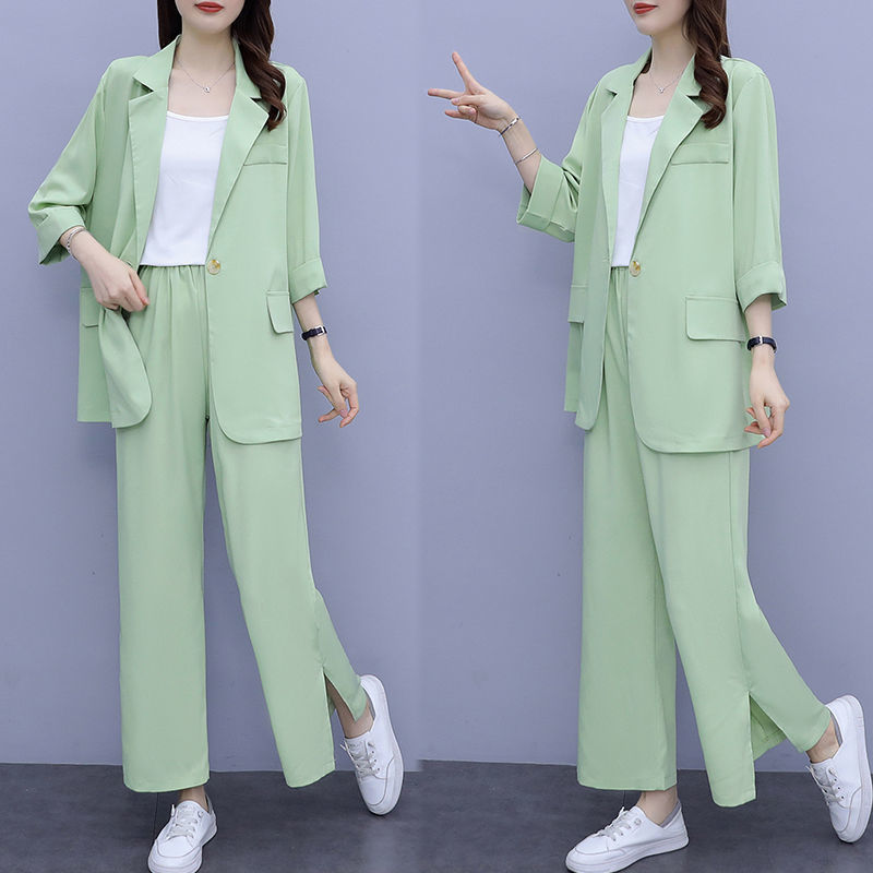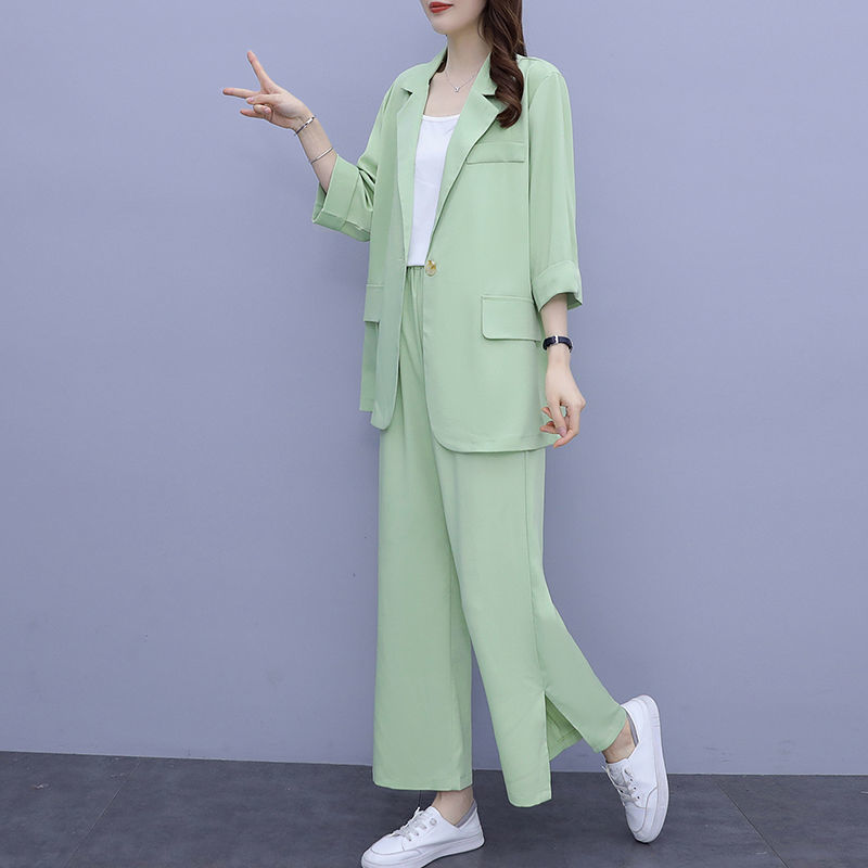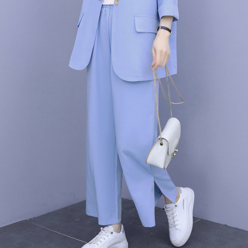 Женский тонкий модный комплект из двух предметов больших размеров, новый тонкий костюм, повседневный женский костюм на весну и осень