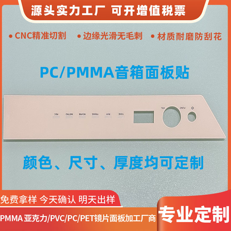 Производитель, обработка на станках с ЧПУ, шелкография, наклейки на панели аудио ПК на заказ, акриловые линзы PMMC, бесплатный образец