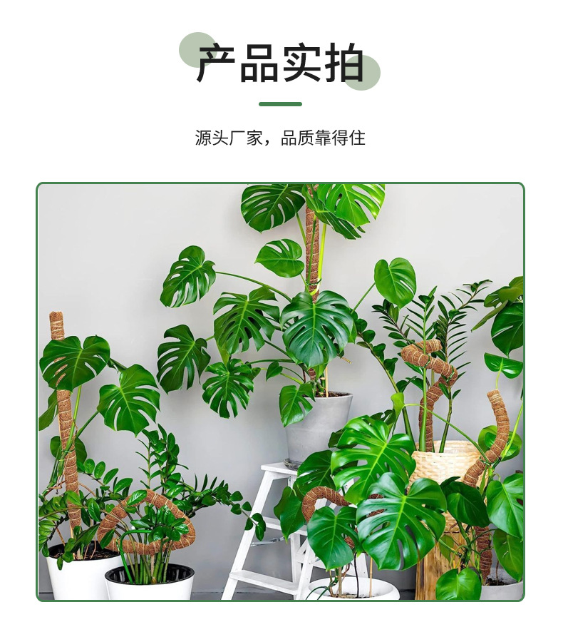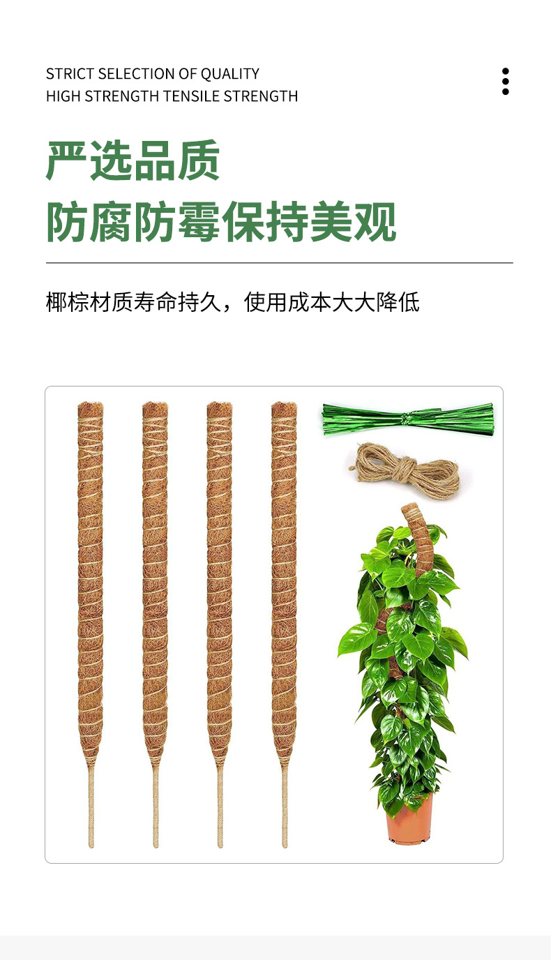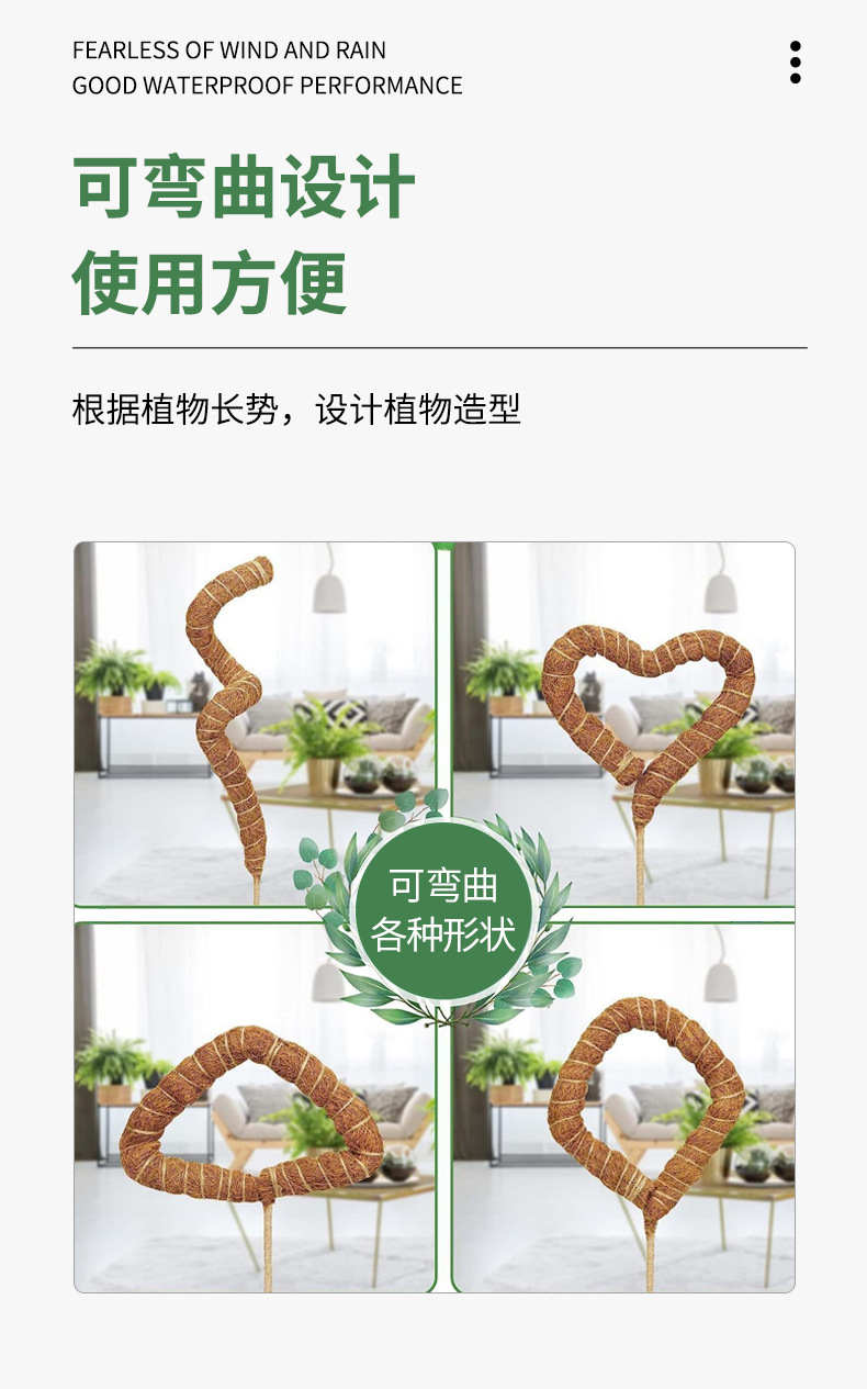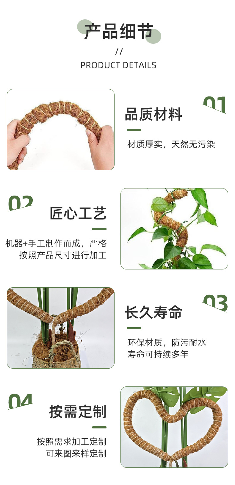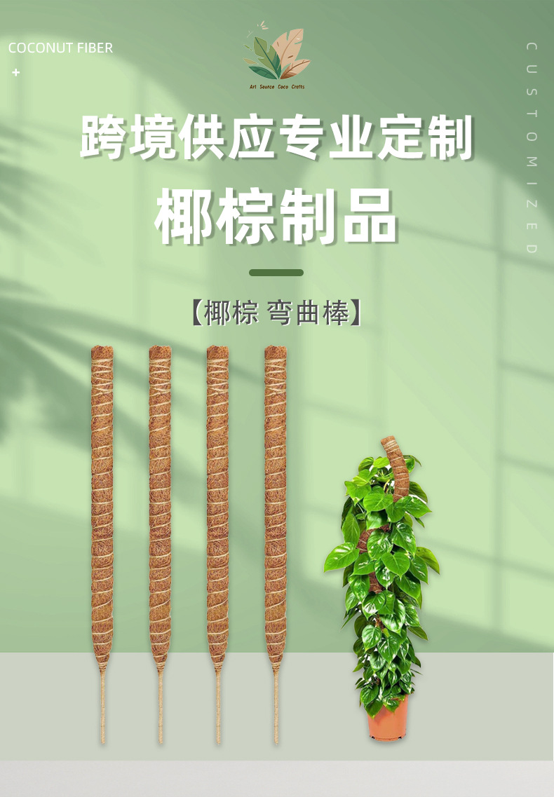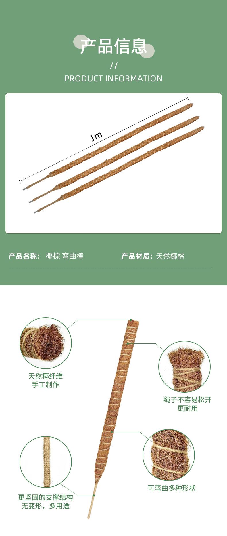 Гибкая опорная рама для растений для внешней торговли, гибкая палка кокосовой пальмы, стержень из мха, зеленая виноградная лоза, подъемная колонна из волокна кокосовой пальмы.