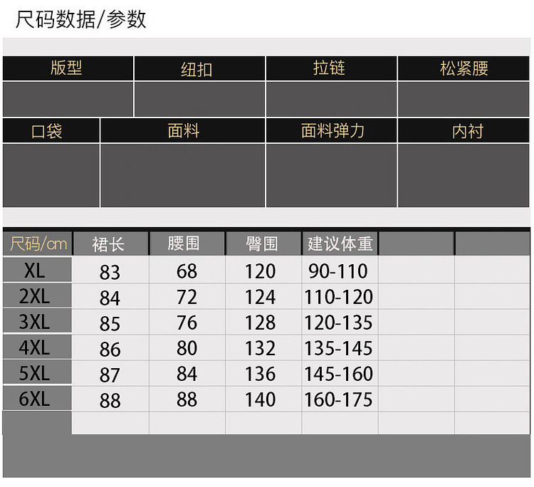 XL; 2XL; 3XL; 4XL; 5XL; 6XL
