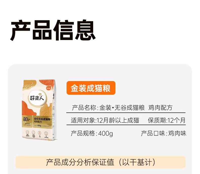 [Дегустационный пакет] 400 г Good Master Gold Беззерновой корм для взрослых кошек Здоровый, питательный и вкусный маленький пакетик