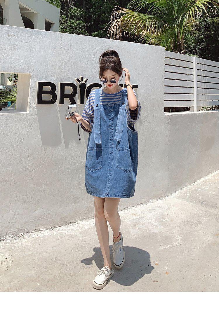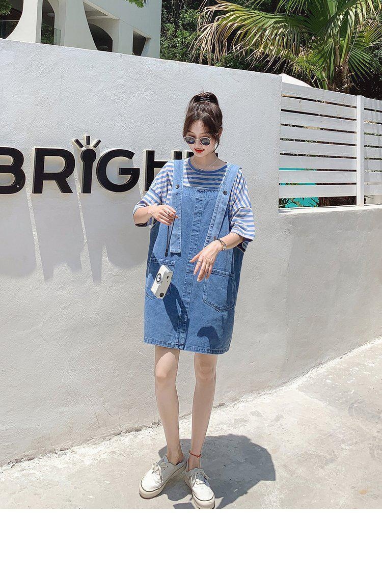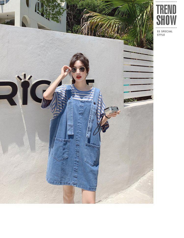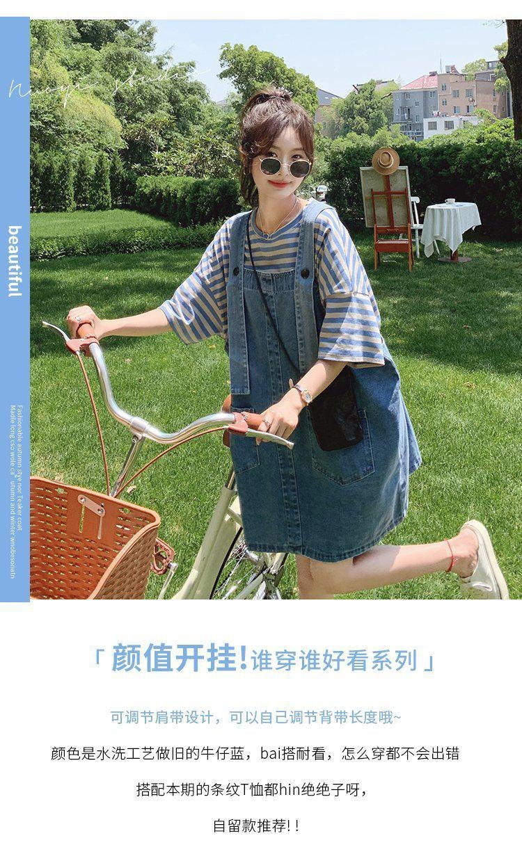 Светло-синяя джинсовая юбка на подтяжках, женский летний костюм 2025, новый корейский стиль, свободное утягивающее платье, уменьшающее возраст, для маленьких людей