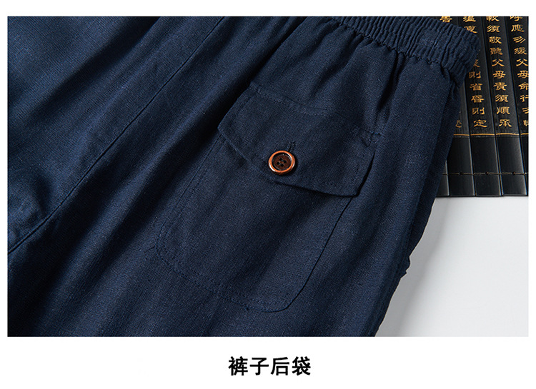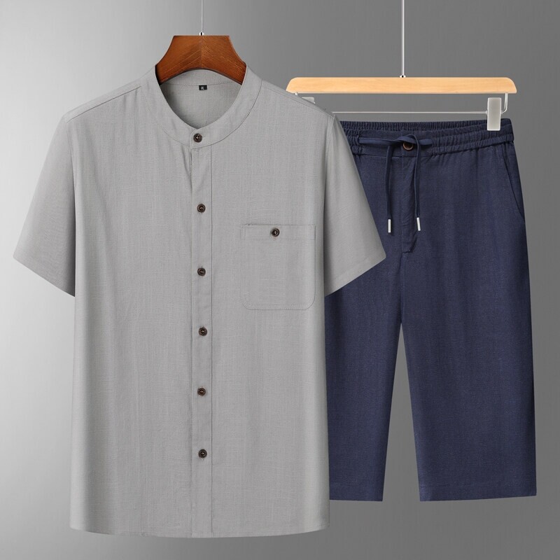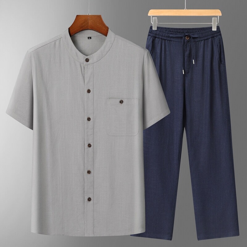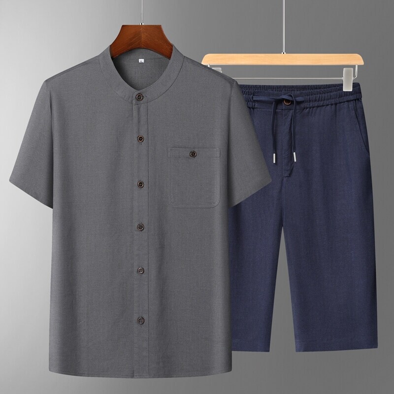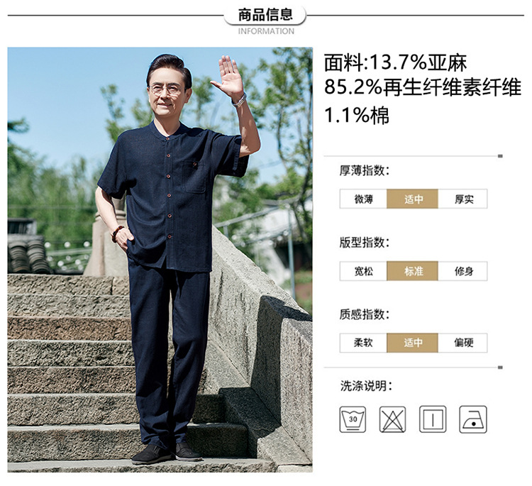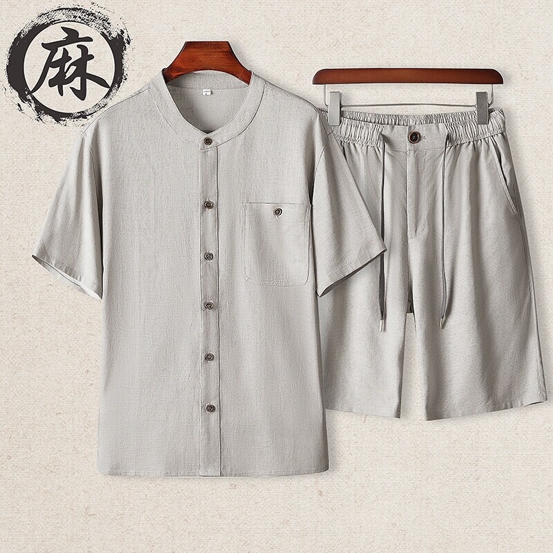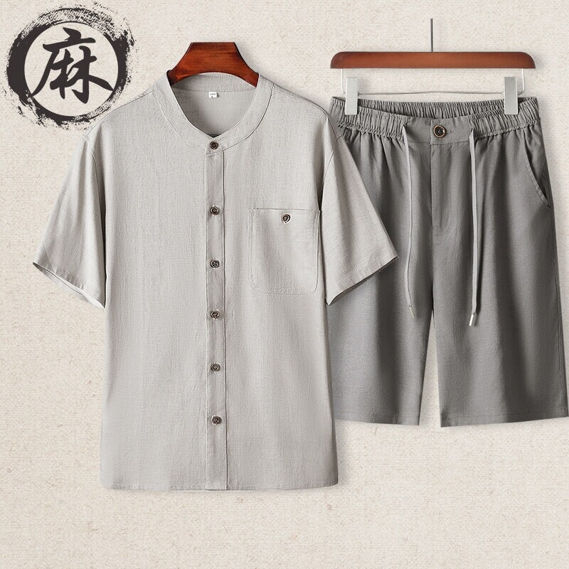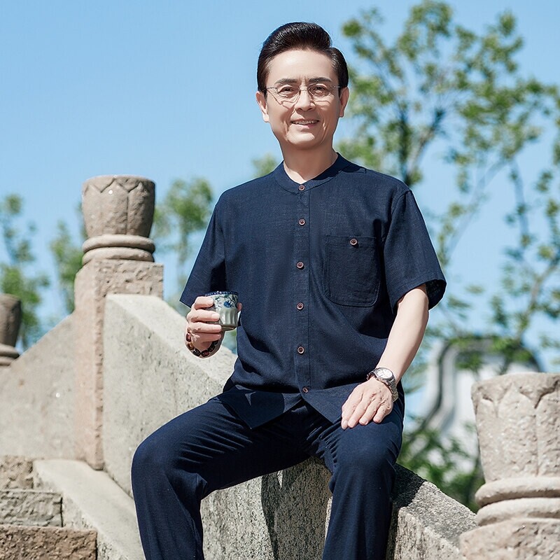 0624 Папин костюм из хлопка и льна, костюм Тан, мужская рубашка с короткими рукавами, летний костюм, льняная одежда для дедушки среднего и пожилого возраста