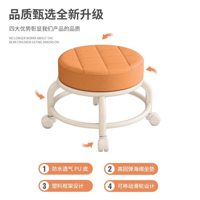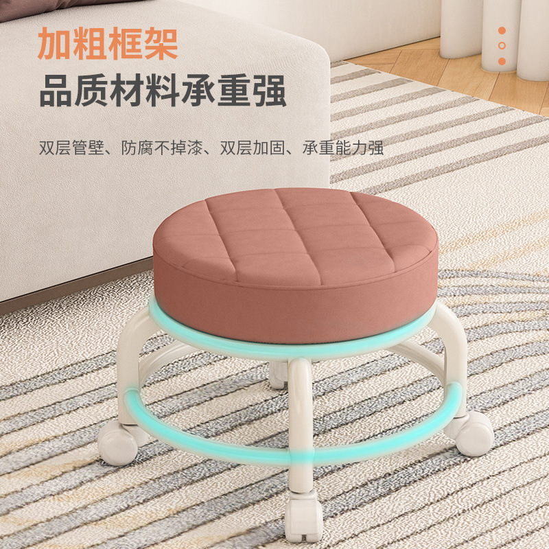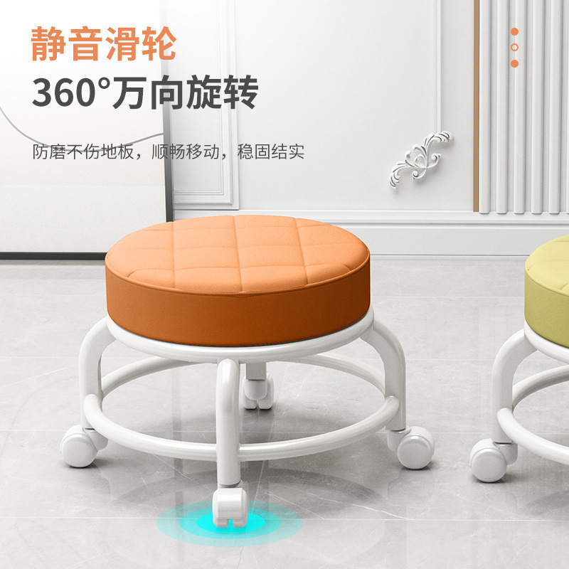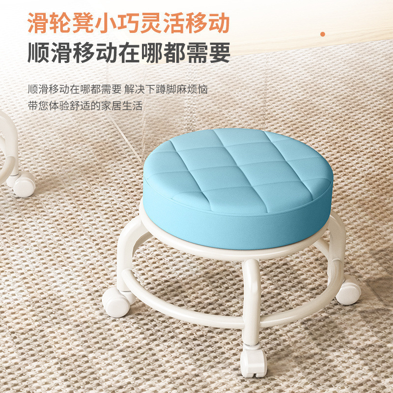 Бытовой мобильный низкий табурет на поворотных роликах с колесами для переноски ребенка, круглый табурет с бесшумными колесами, бесшовный табурет для детей, которые учатся ходить, сменяют обувь и убирают пол.