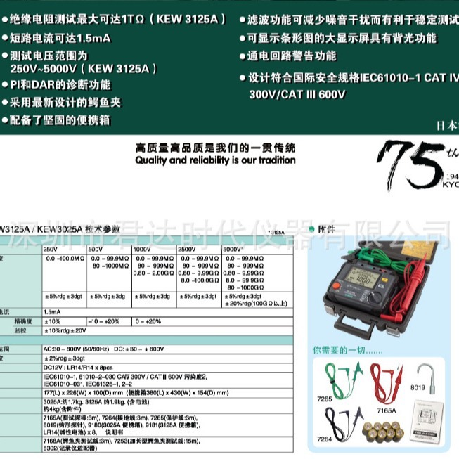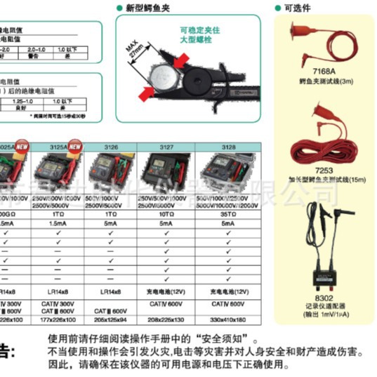 克列茨KEW3125A 数字高压绝缘电阻计附件: