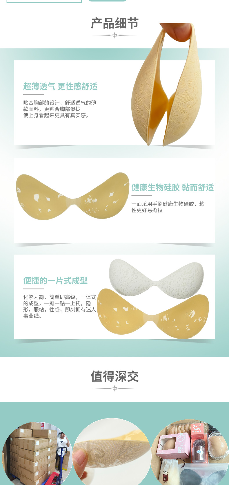 薄款提拉防下垂隐形防凸点聚拢胸贴一片式无痕婚纱用硅胶文胸乳贴