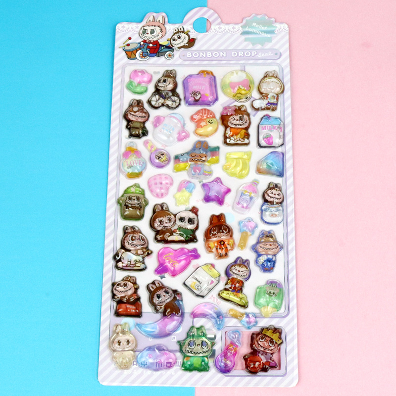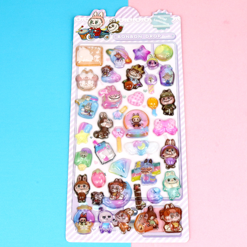 Детская мультяшная наклейка LABUBU 3D рельефная кристальная наклейка LABUBU наклейка эльф мультяшный кролик