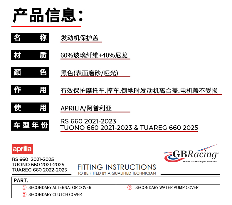 Подходит для Aprilia RS660 TUONO660 21-23, модифицированный двигатель, защитная крышка от падения, боковая крышка