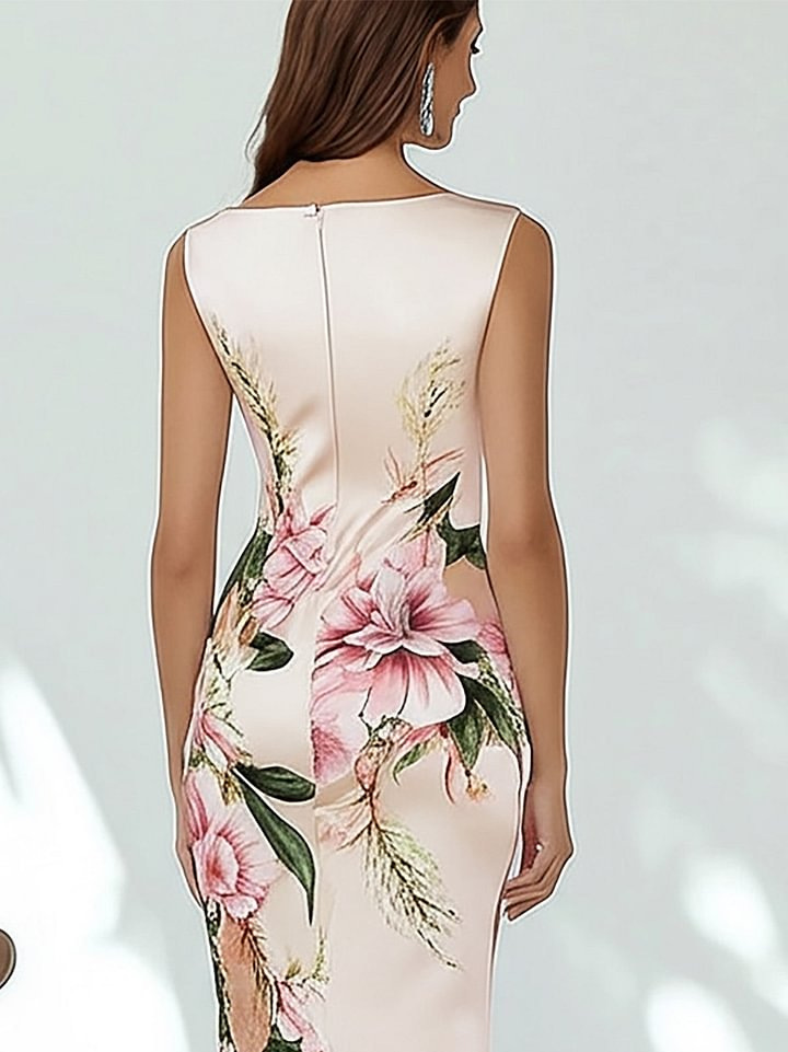 2025 Европейская и американская женская одежда Amazon цветочная цифровая печать подтяжки V-образный вырез без рукавов юбка на бедрах молния сзади