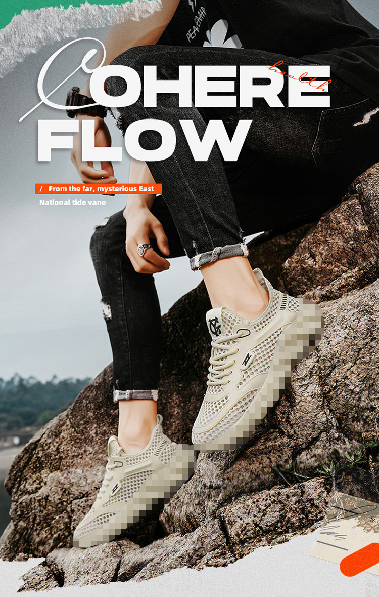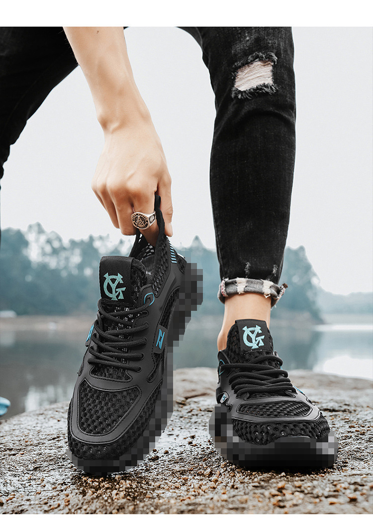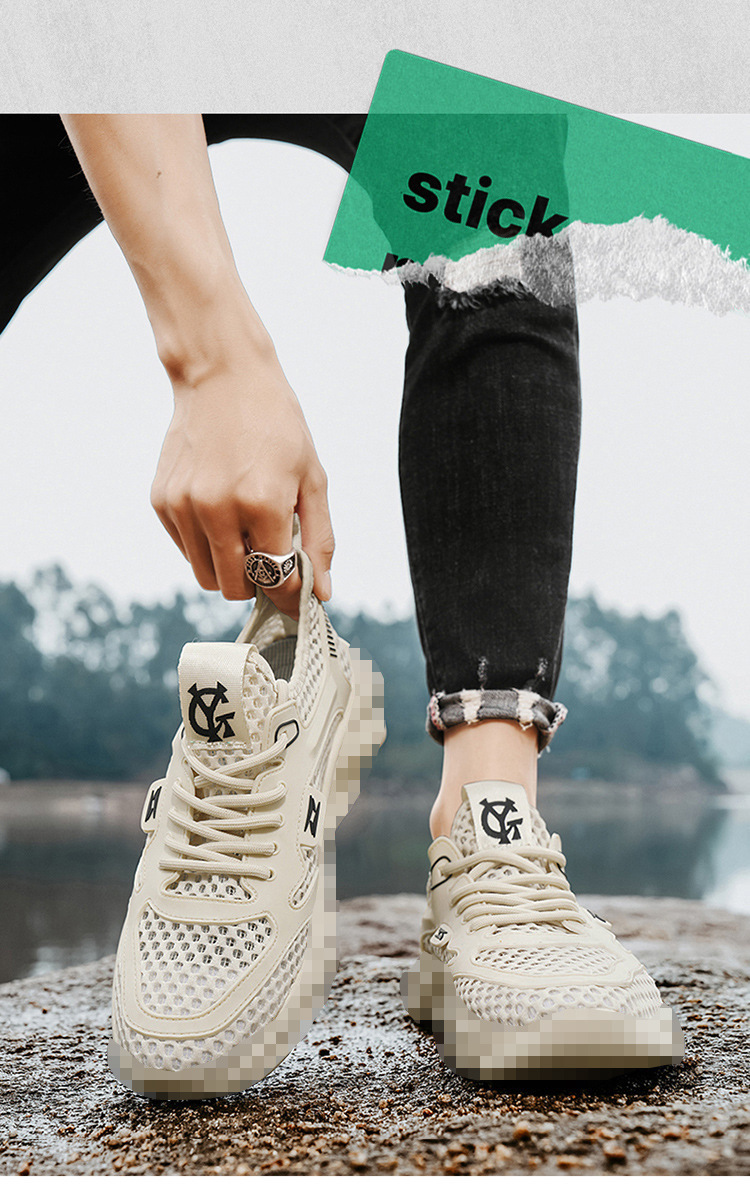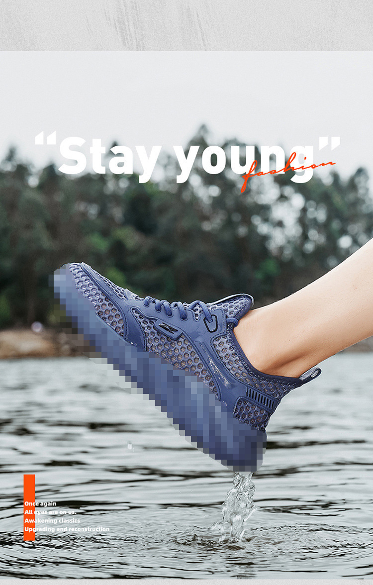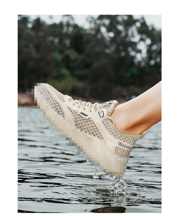 Дропшиппинг】сетчатая обувь для прогулок на шнуровке с круглым носком, быстросохнущая обувь с большой сеткой, дышащая спортивная мужская обувь с сеткой