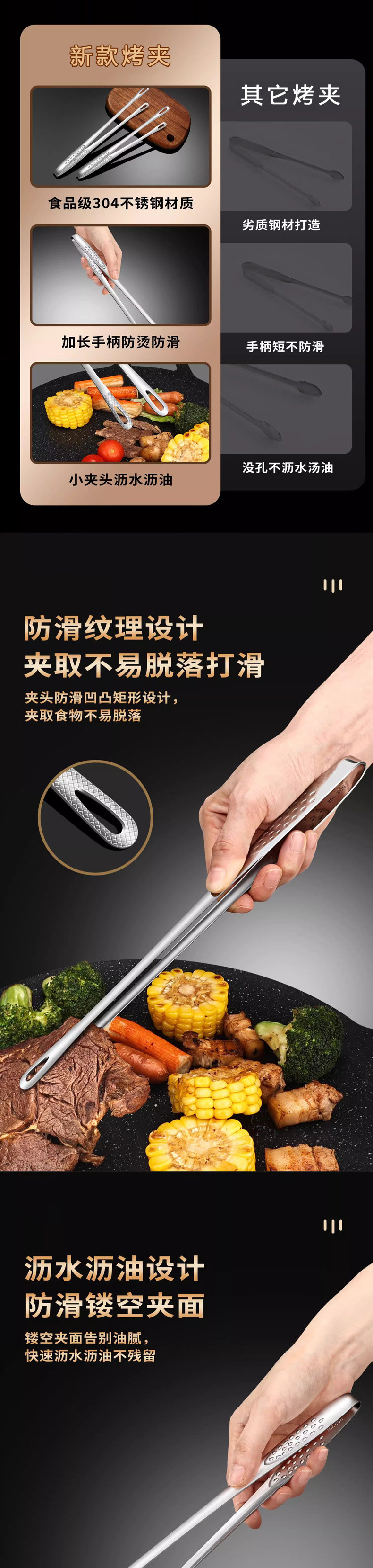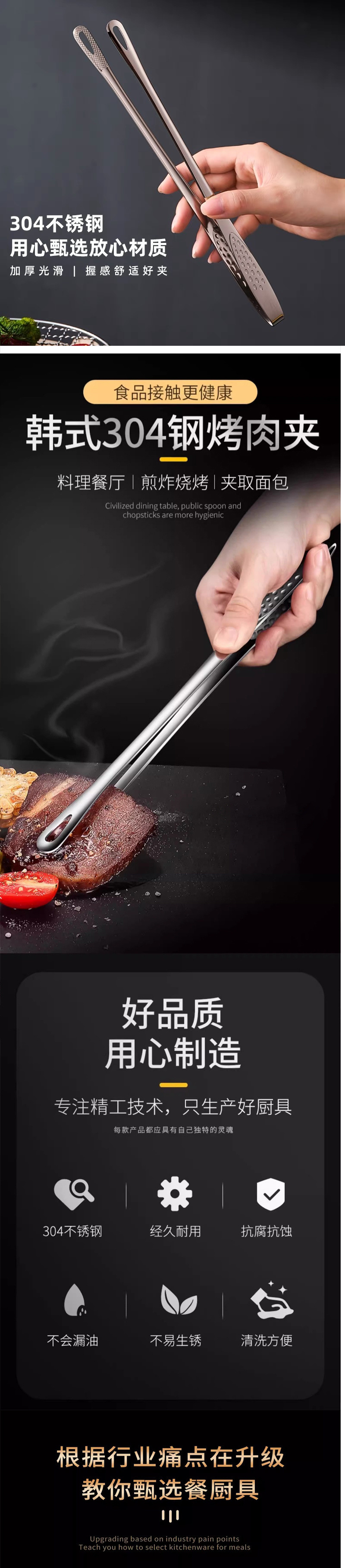 Утолщенные зажимы для еды из нержавеющей стали для кухонного стейка, бытовые зажимы для льда для барбекю, зажимы для корейского барбекю