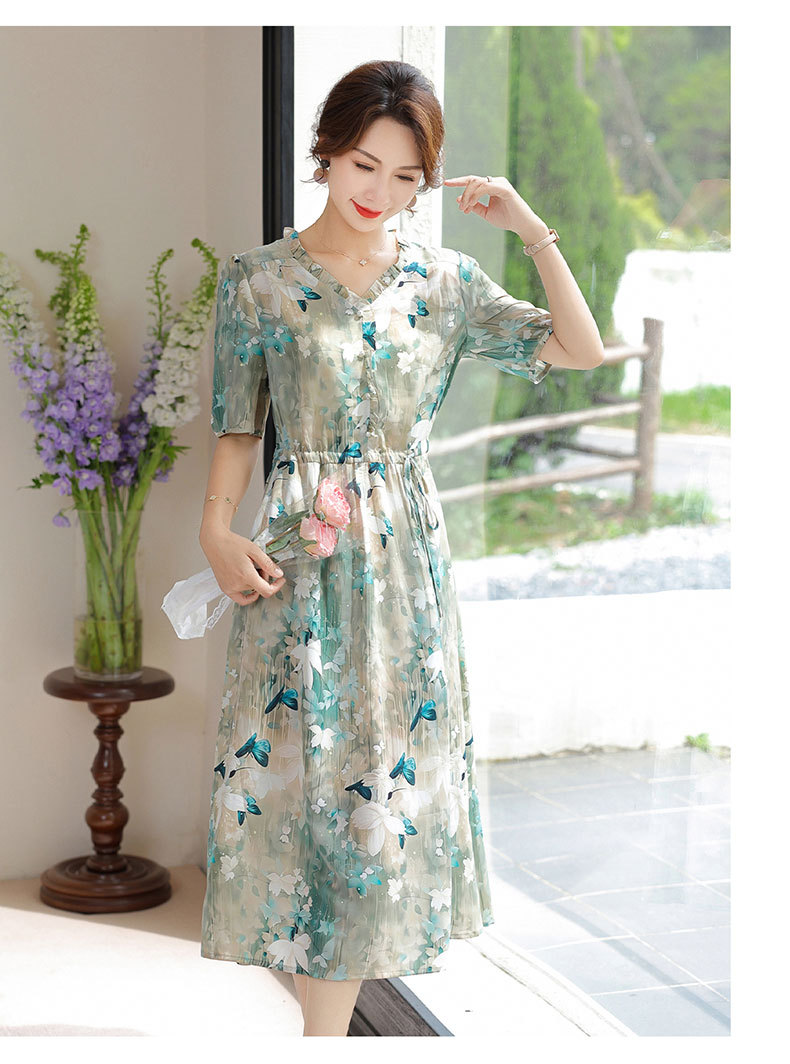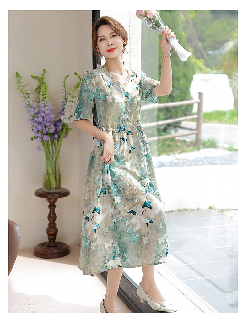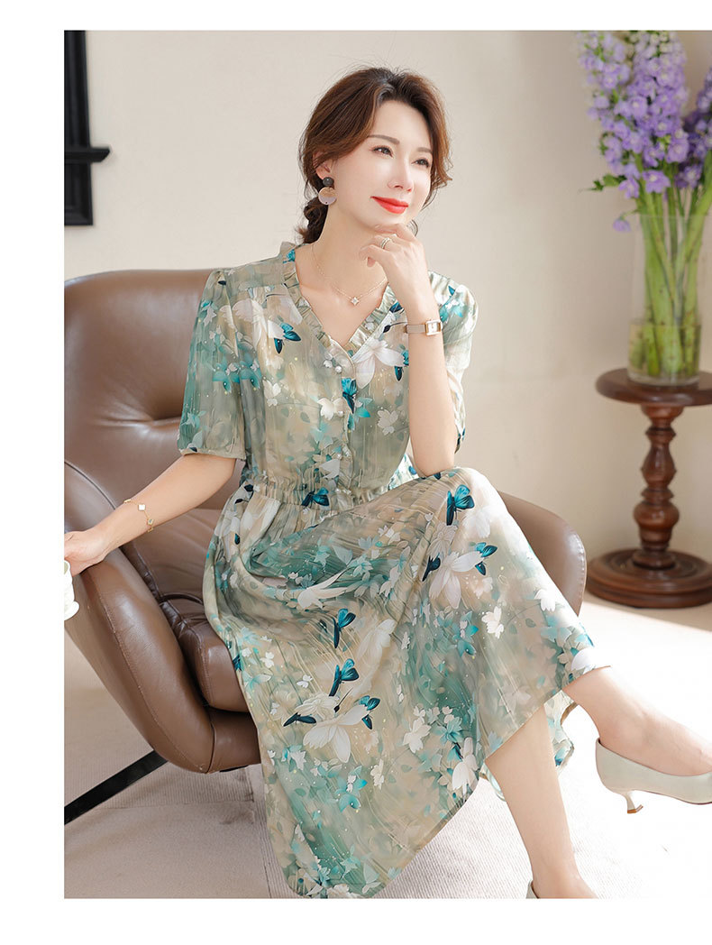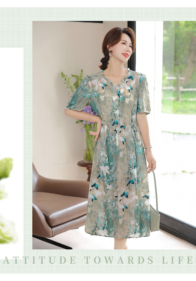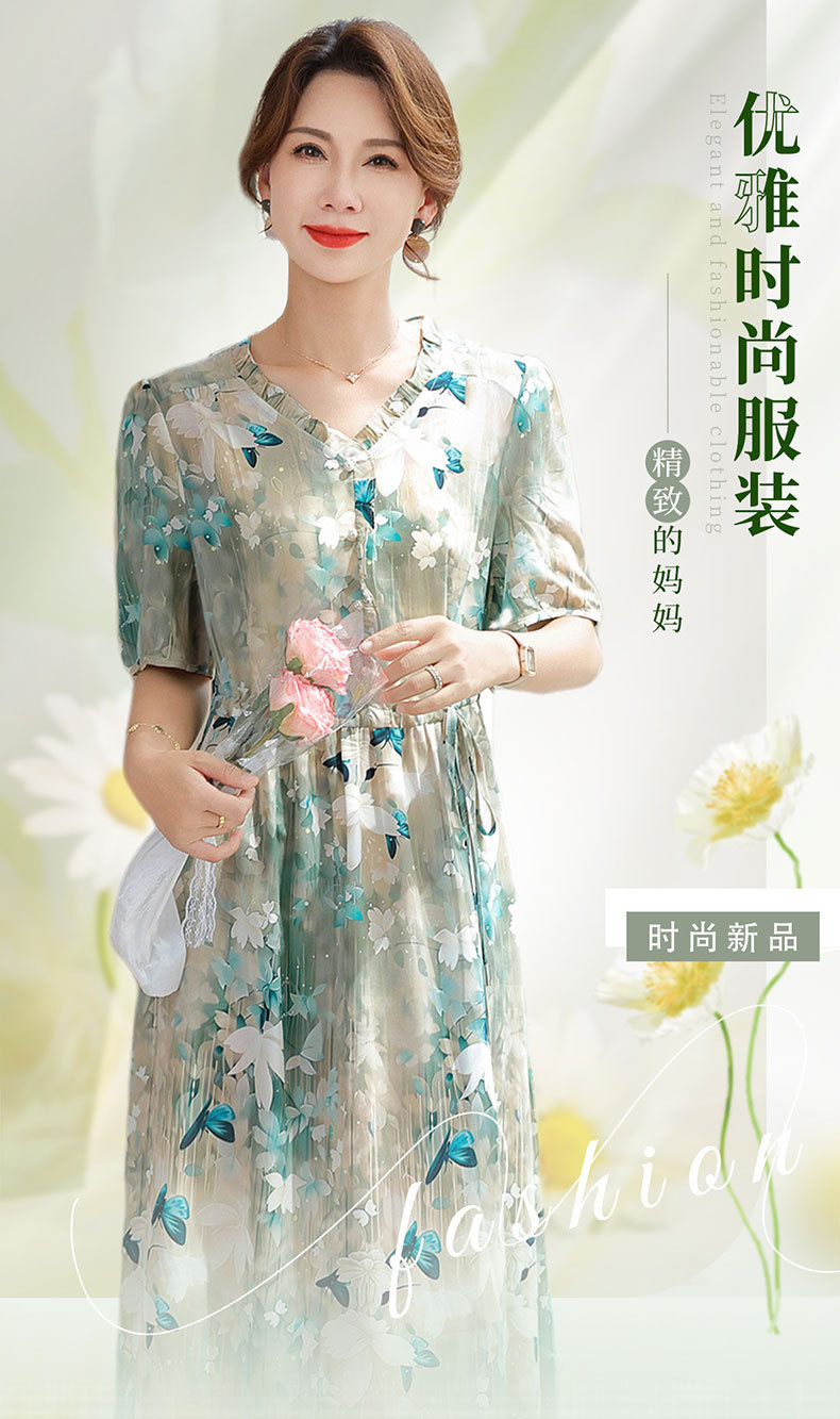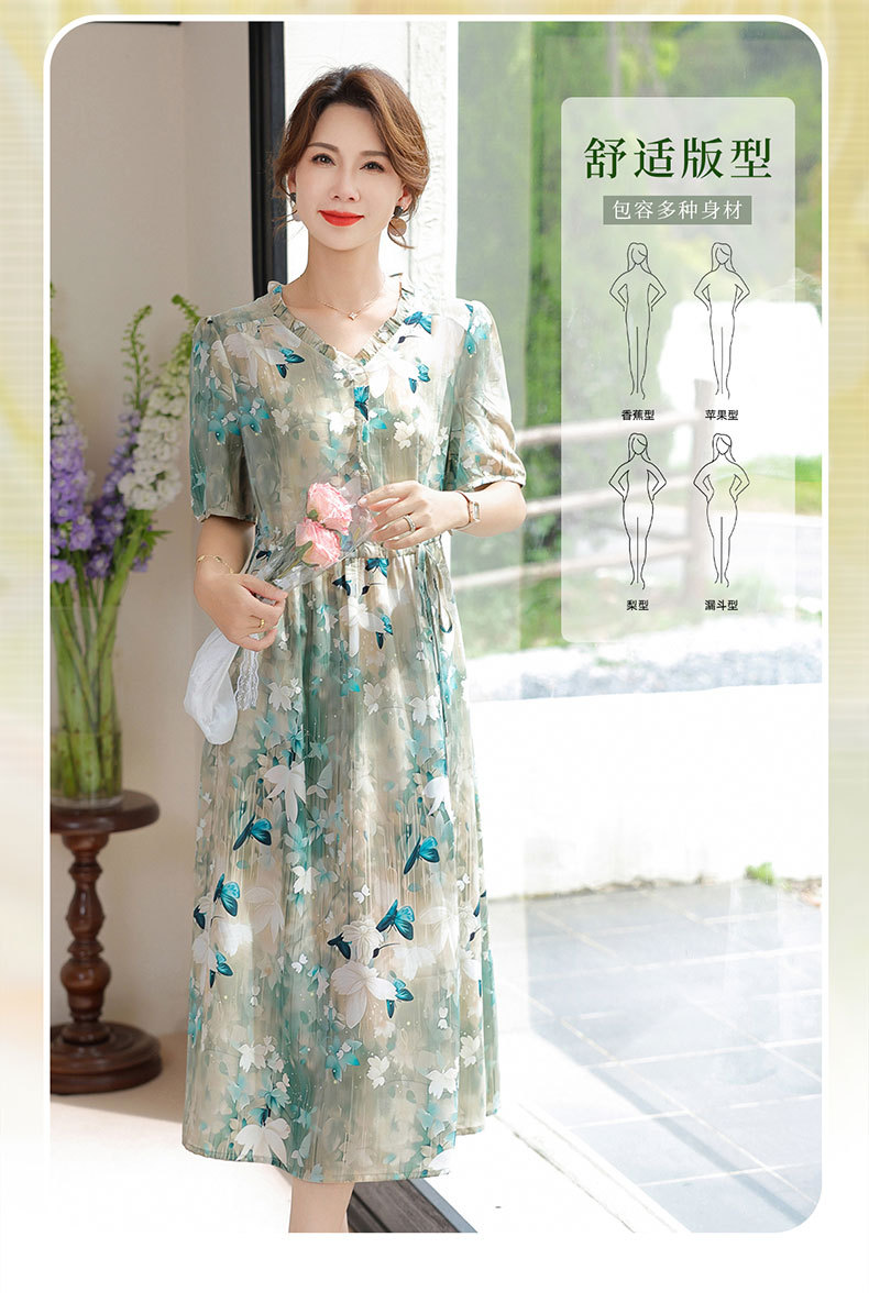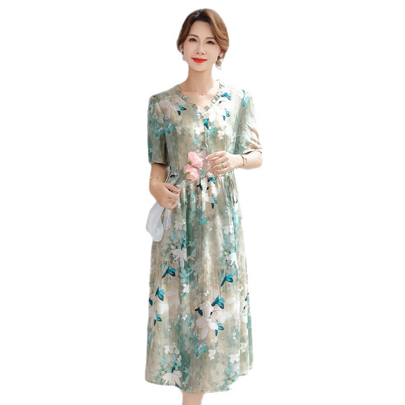 2025 новый стиль юбки средней длины и одежда для женщин среднего и старшего возраста, летние платья для мам среднего возраста