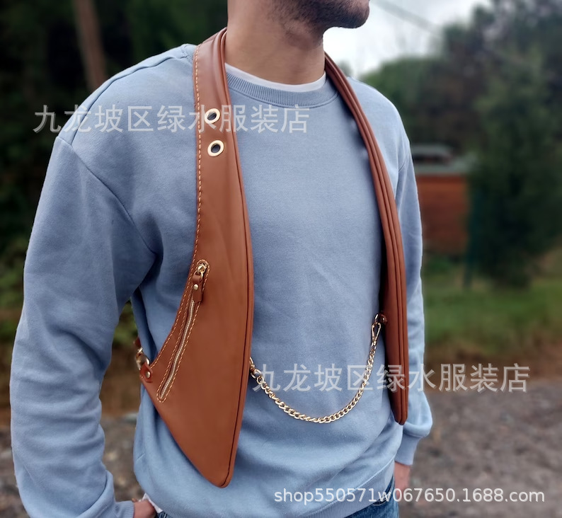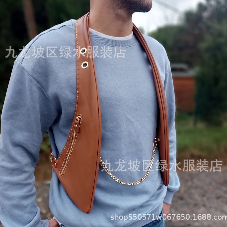 2025 новый европейский и американский кожаный ретро-жилет с подтяжками, сумка через плечо, портативная изогнутая сумка для улицы, желаемая поставка