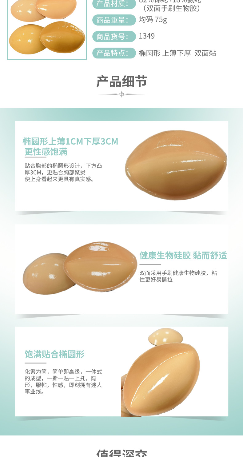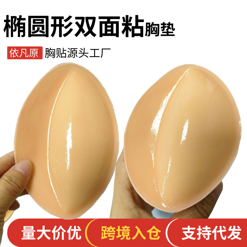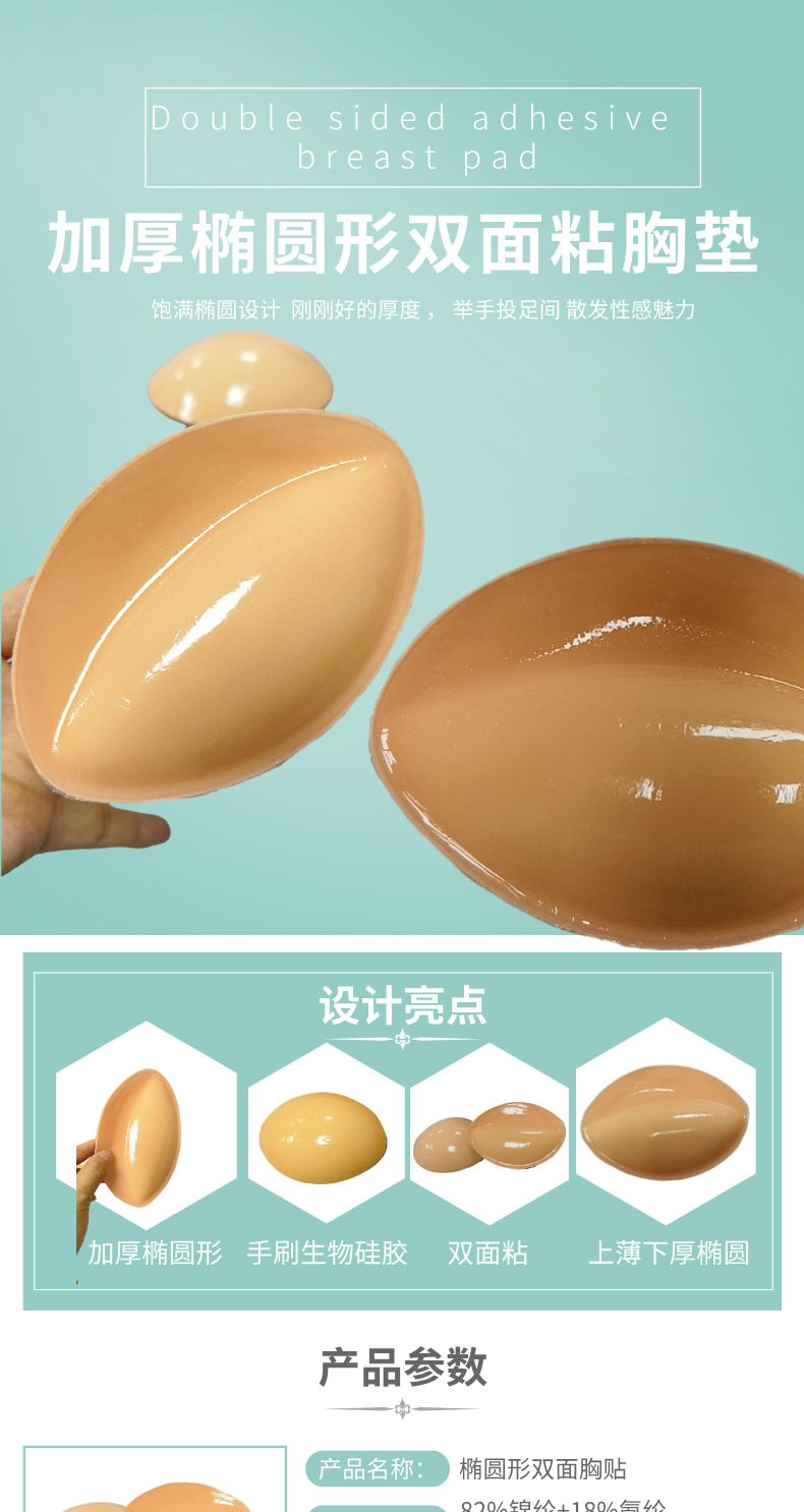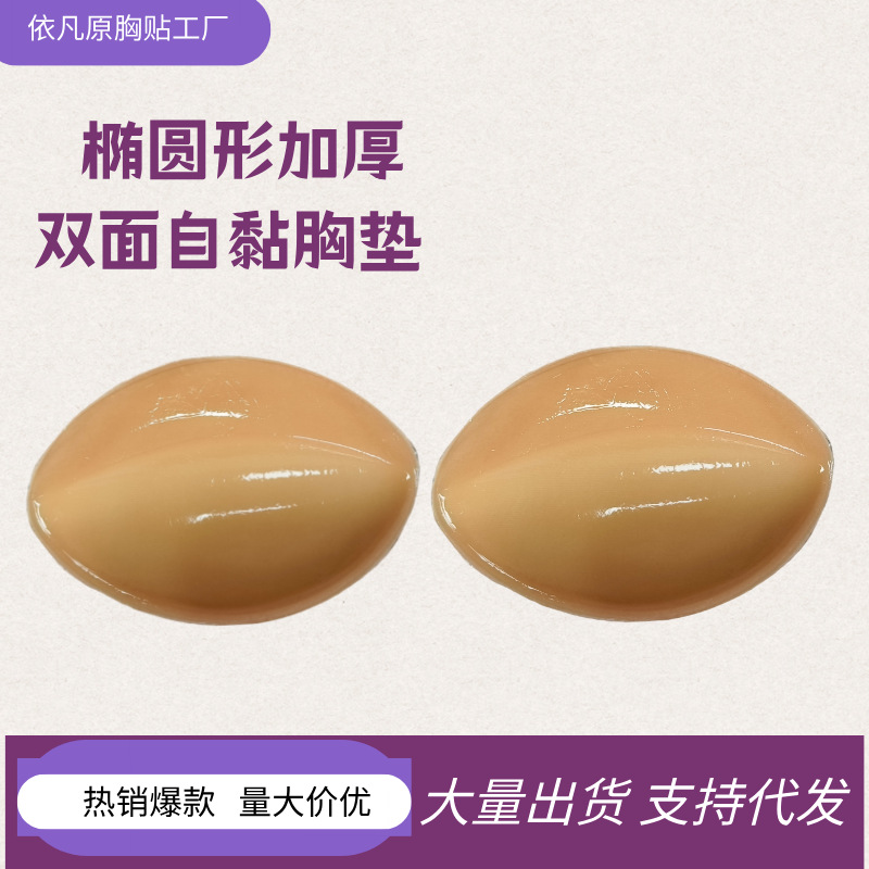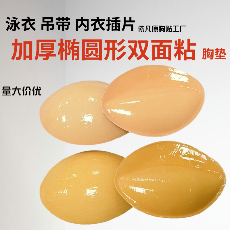 跨境双面黏加厚椭圆形胸垫 半圆显胸大聚拢自粘胸贴泳衣内衣插片