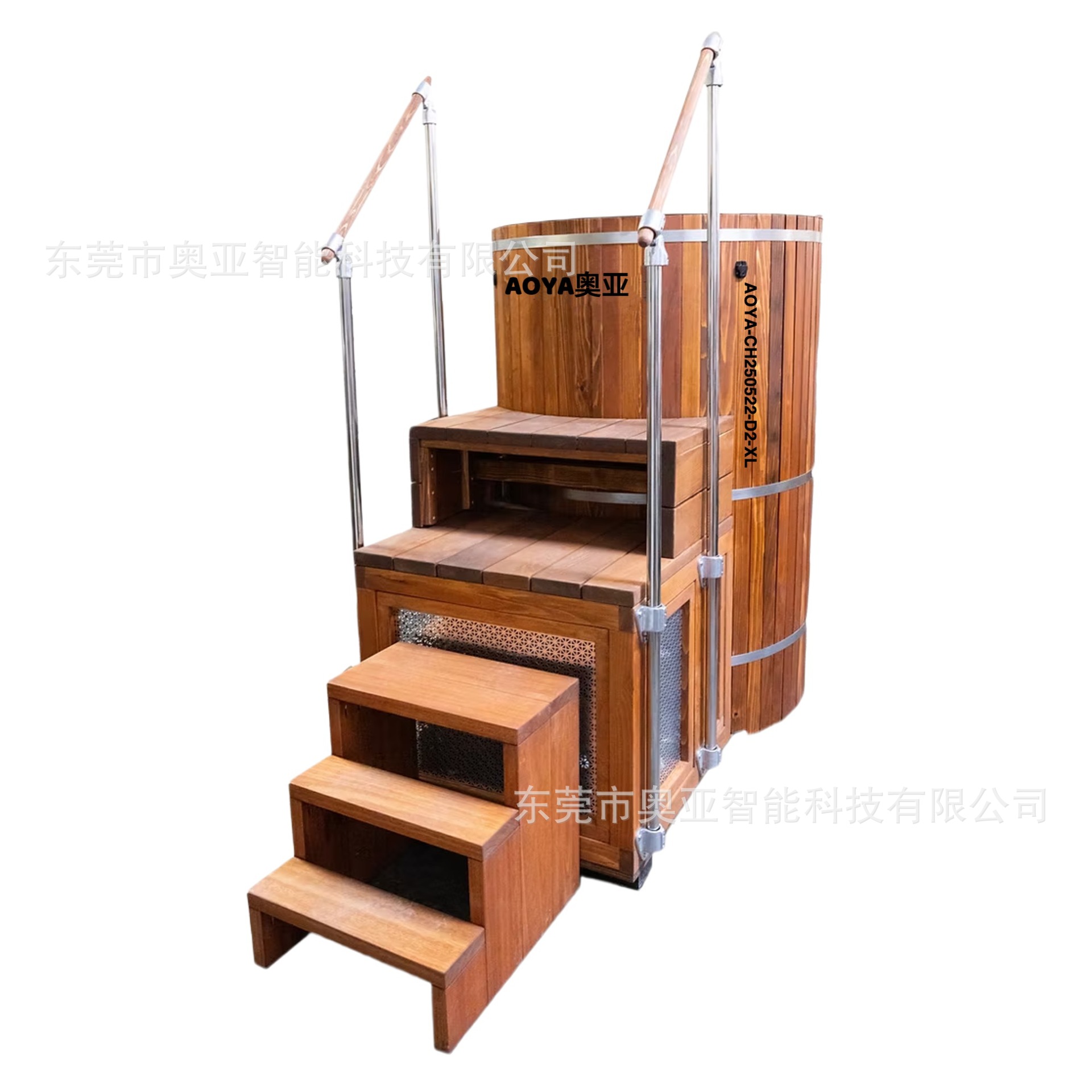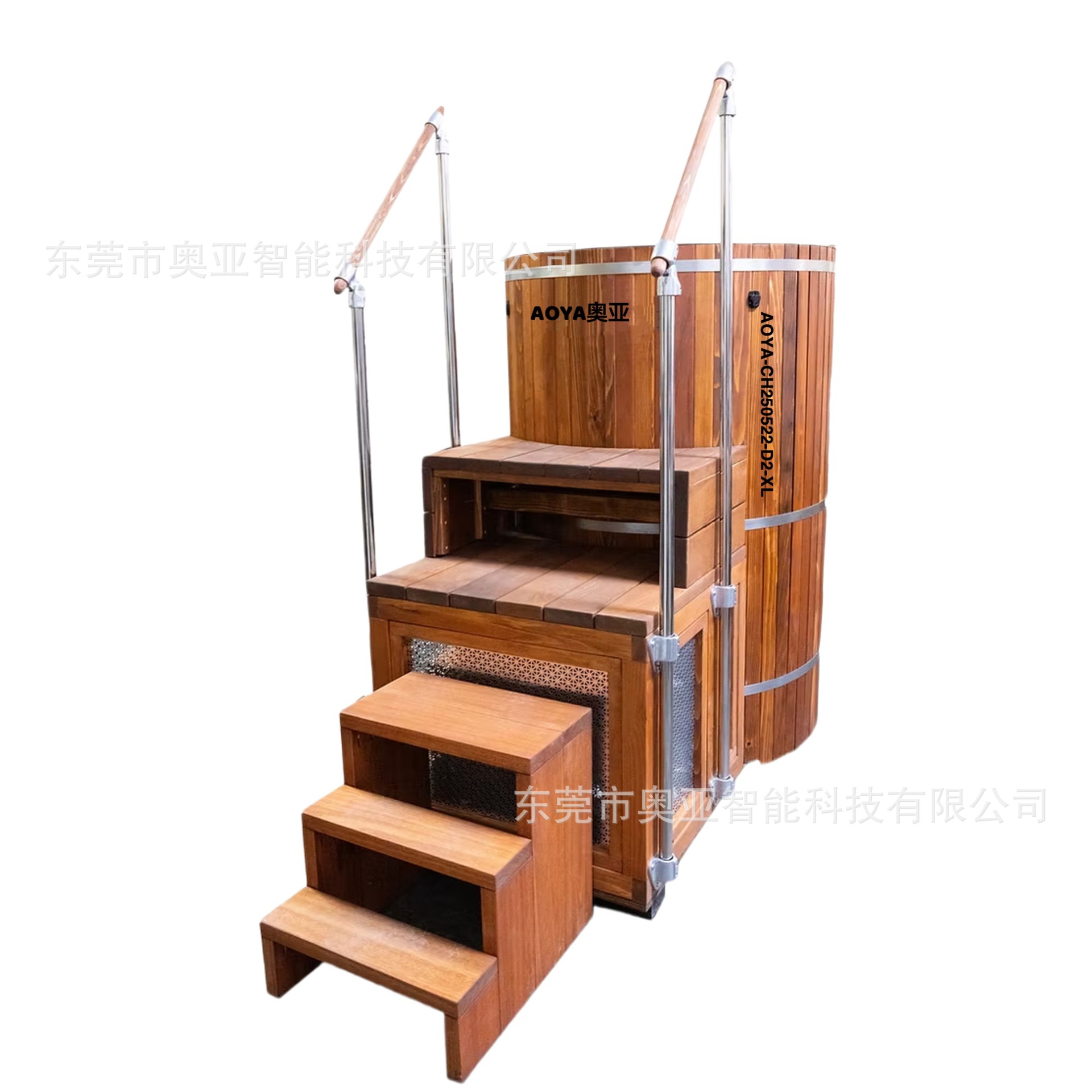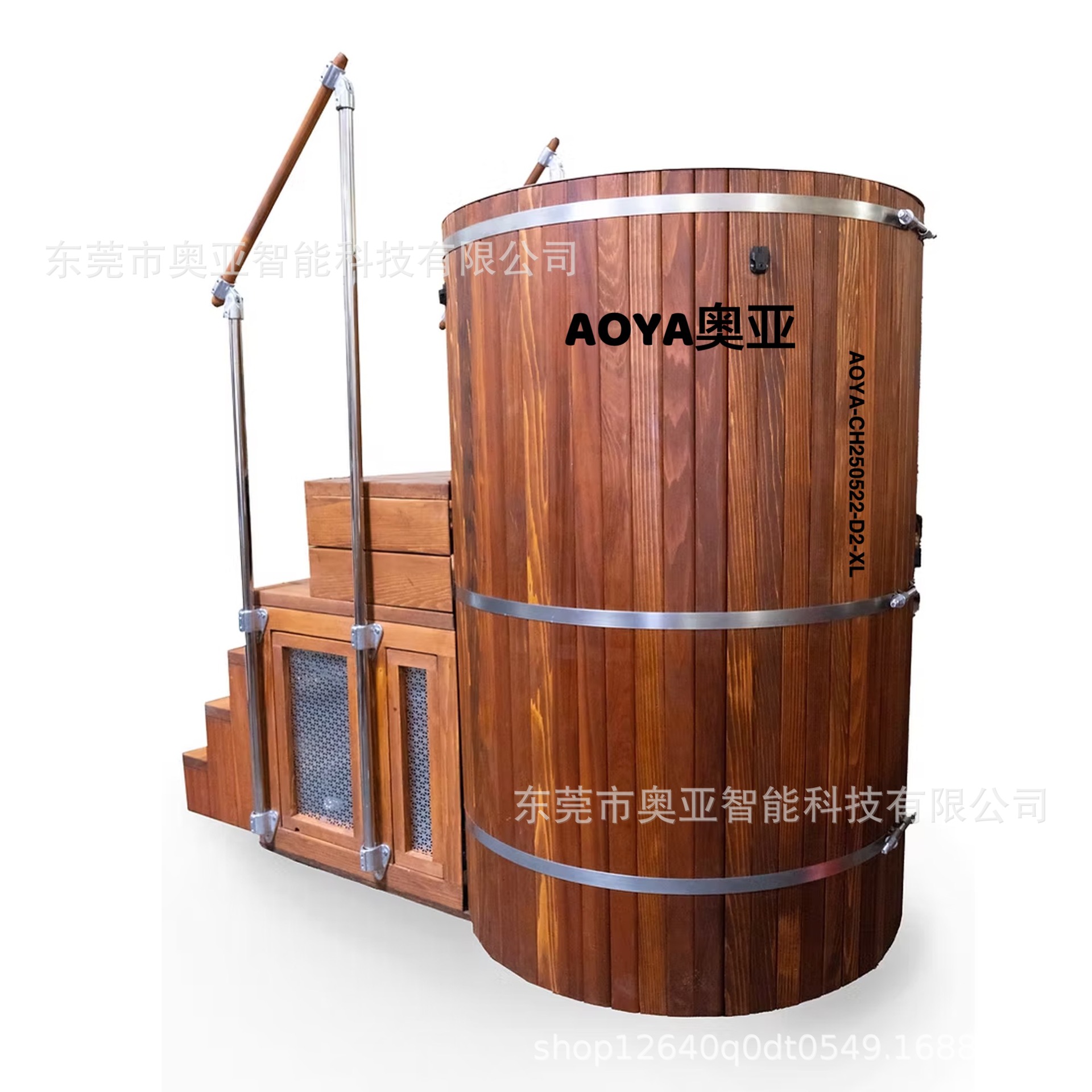 东莞市奥亚智能科技有限公司,主要开发设计高端运动员专用冰浴制冷设备浴缸,浴缸主要进口原木和不锈钢316材质组合合成,内部具有完善的冷却制冰系统,和低温水质循环系统,包括电压控制系统,手机控制系统和水质优化系统,完全按照运动员需求设计,