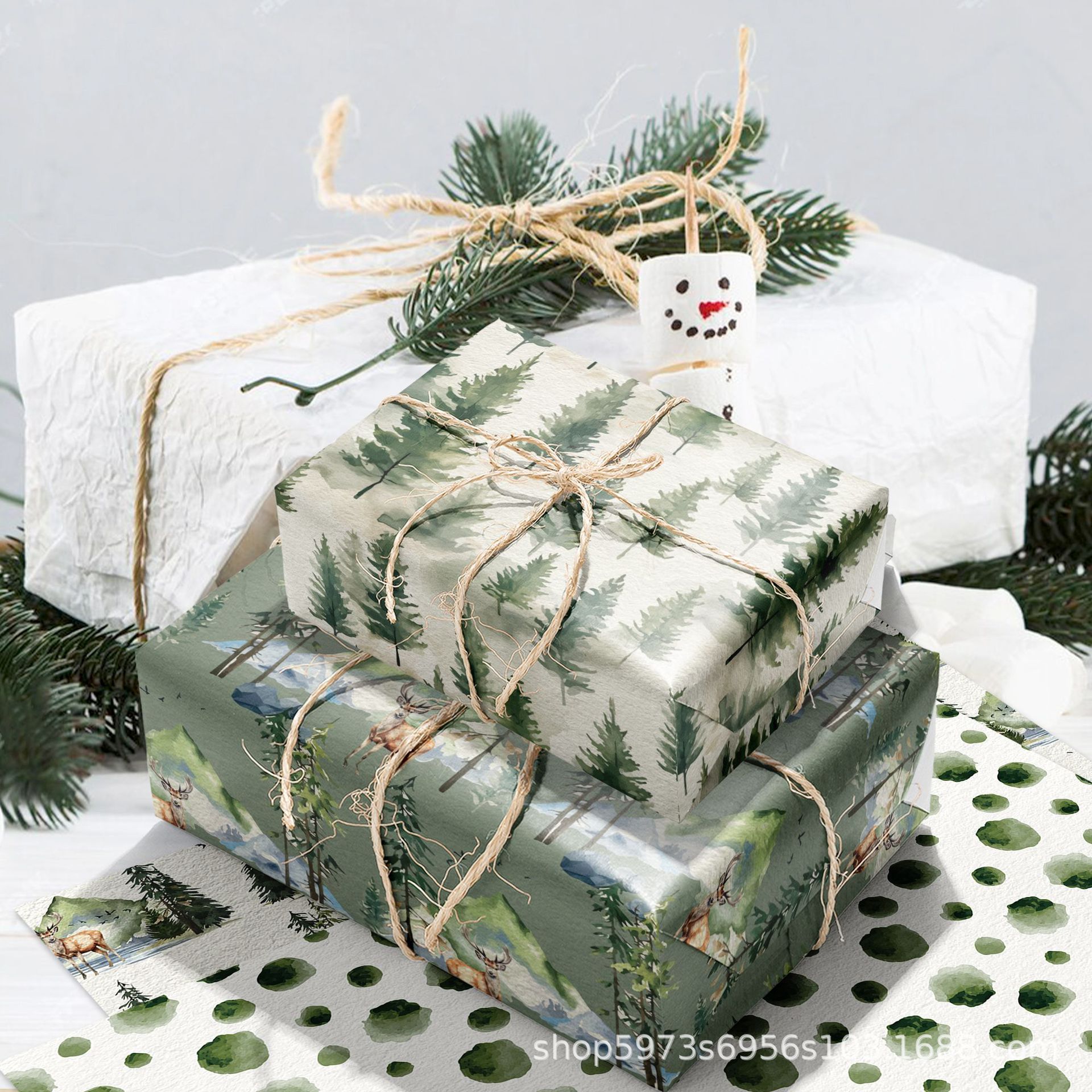 WZ069 Рождественская водная лесная зеленая акварельная подарочная декоративная бумага для украшения подарочных коробок и внешней упаковки