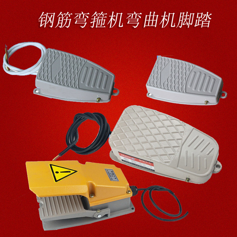 Машина для гибки арматуры с проволокой, большими и маленькими ножными педалями, ножным переключателем и ограничителем хода.
