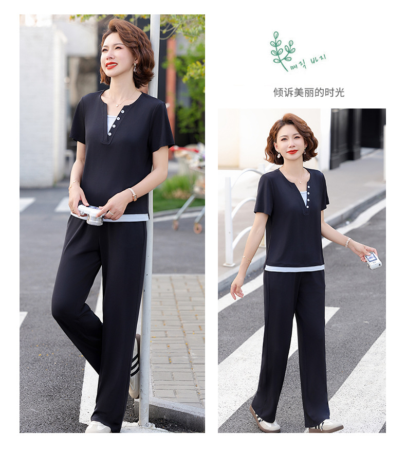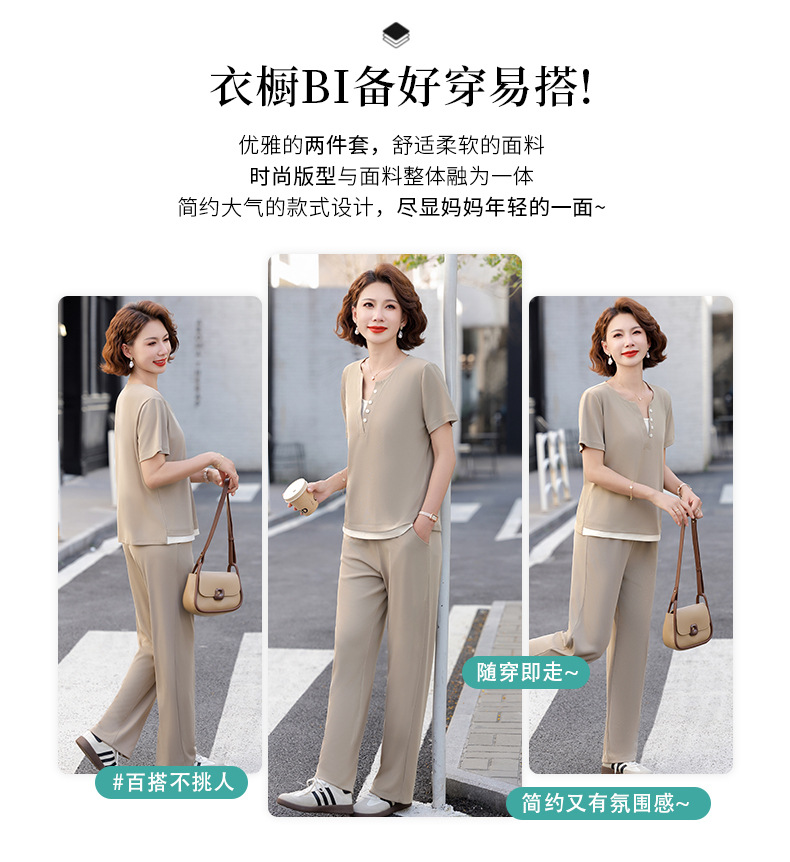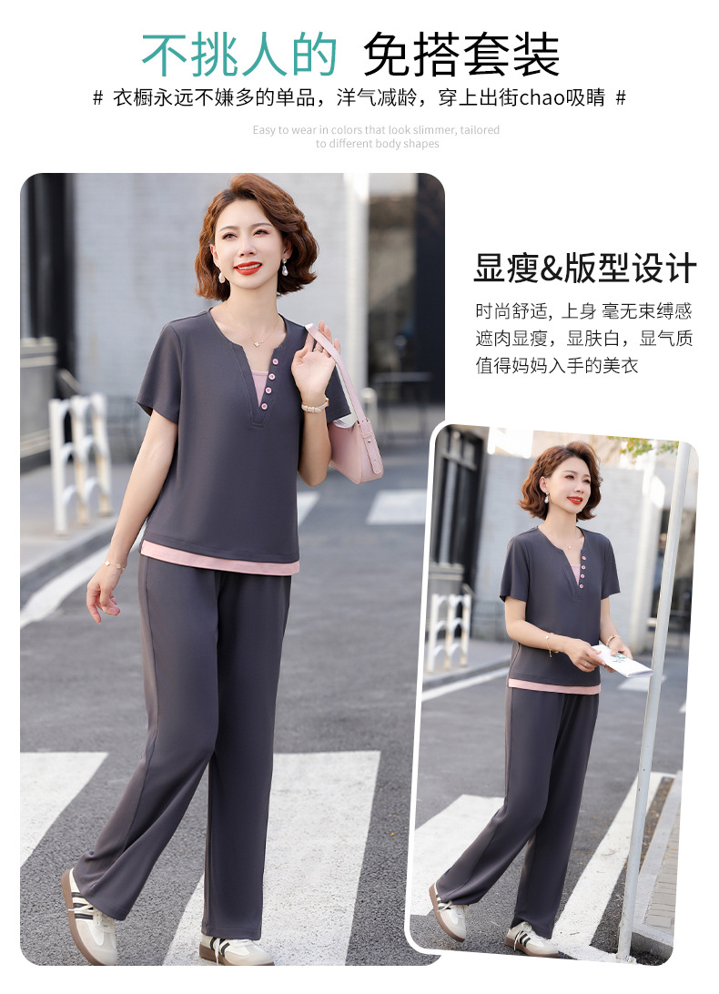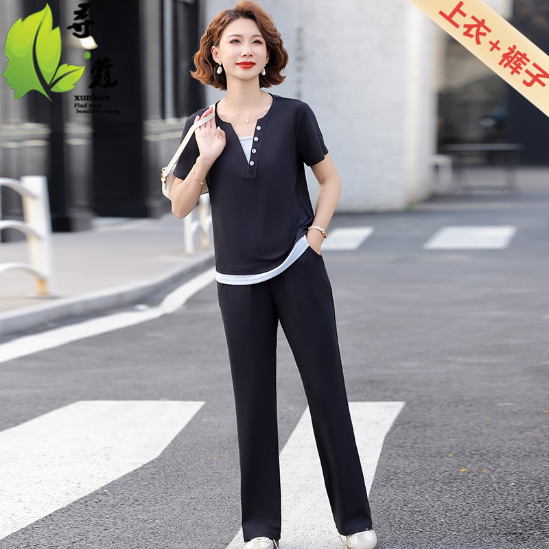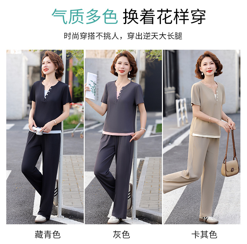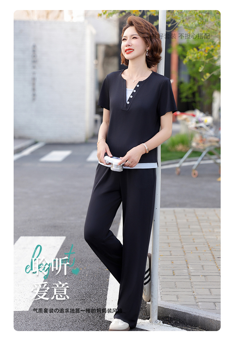 Модный повседневный костюм для женщин среднего и пожилого возраста, облегающий комплект из двух предметов, летняя одежда для женщин среднего возраста.